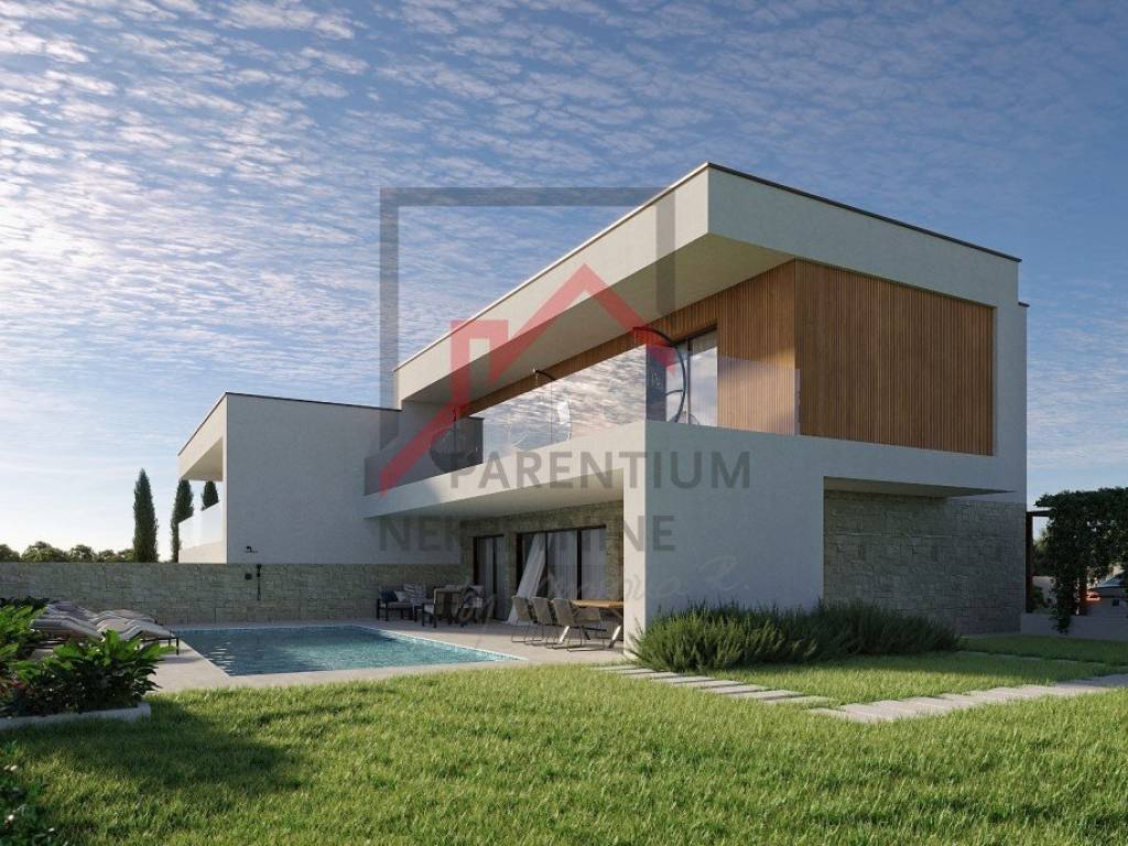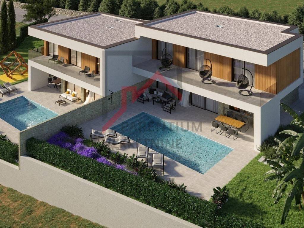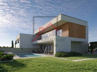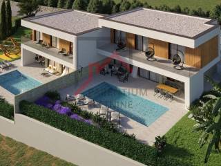 U prodaji je moderna dvojna vila smještena u idiličnom selu, poznatom po vinogradima, maslinicima i opuštajućoj atmosferi. Ova vila ima privatni bazen, prostrani vrt, te parkiralište, pružajući savršenu privatnost i udobnost.
