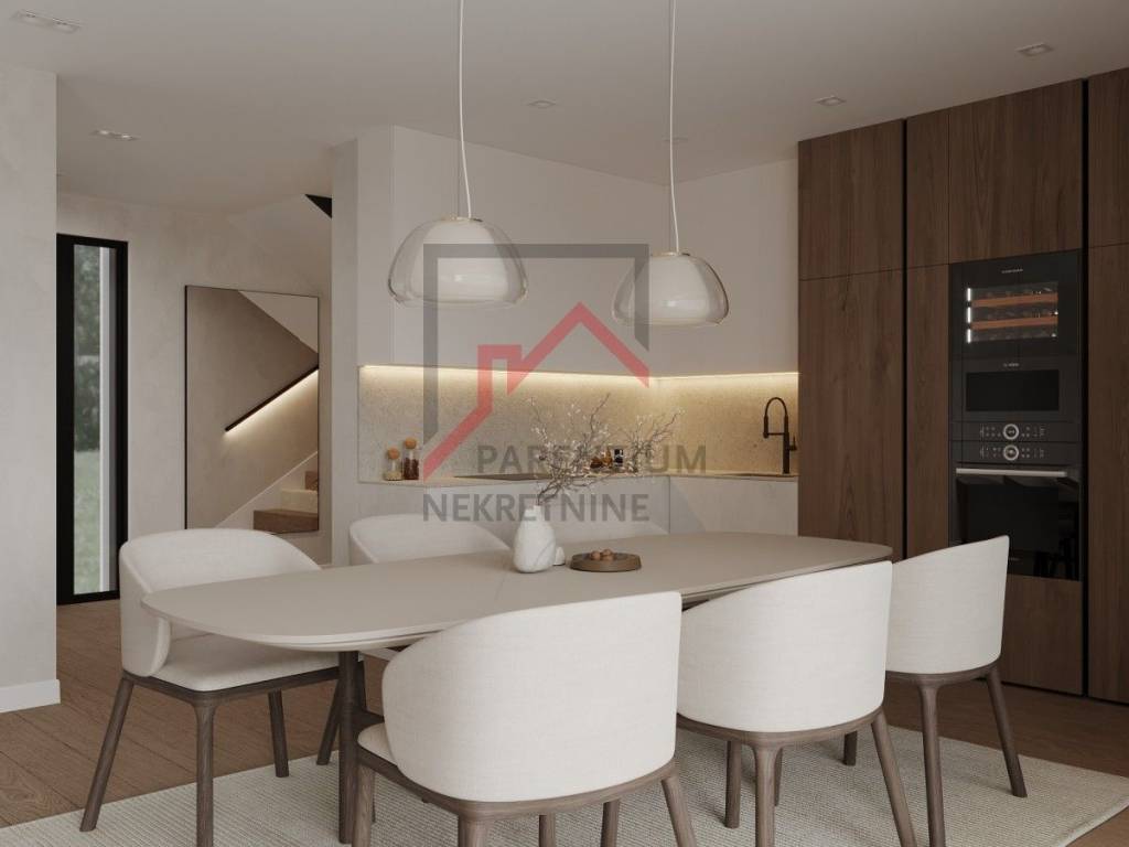 Smještena na zemljištu od 624 m, ova moderna dvojnica nudi 186,54 m savršeno organiziranog stambenog prostora.