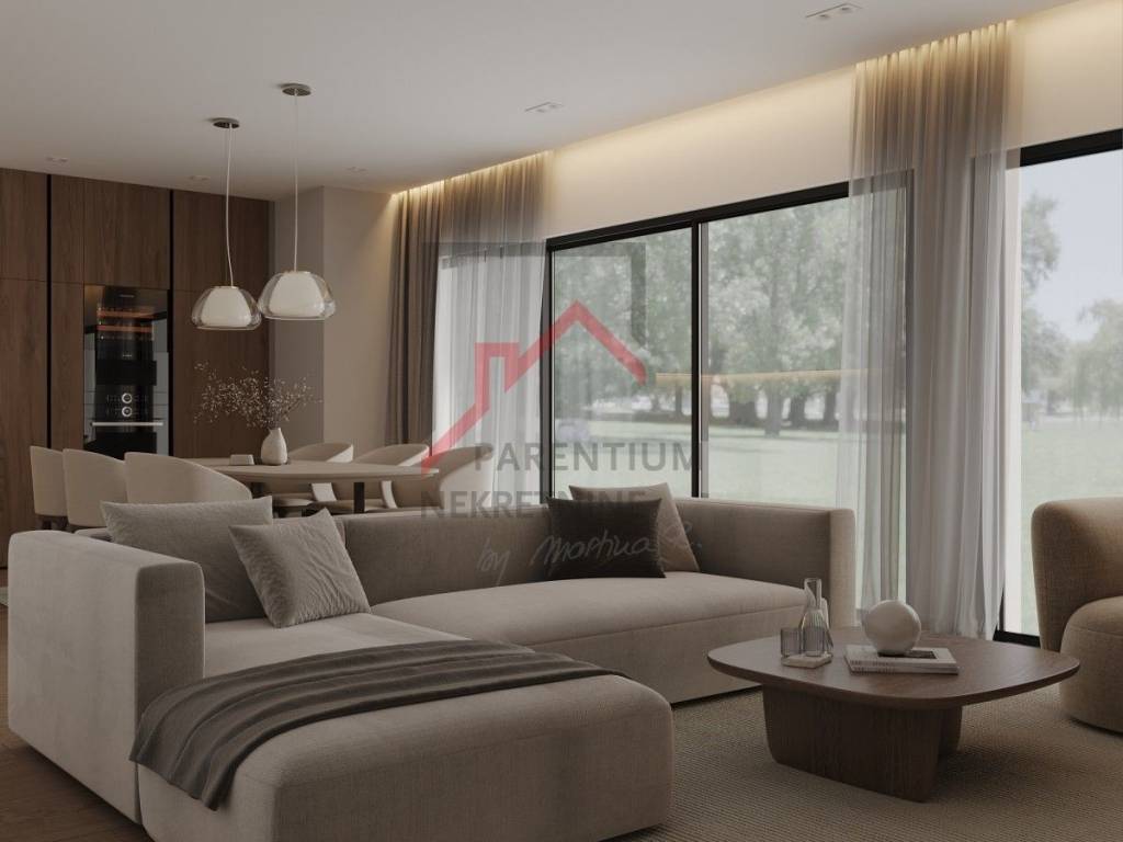 Prizemlje ove vile krasi elegantni dnevni boravak s blagovaonicom i otvorenom kuhinjom, koji zajedno čine središte doma. Od dodatnih prostorija imamo spremište, tehničku sobu i utility sobu. Uz gostinjski toalet u prizemlju imamo i jedan vanjski. Veliki prozori unose obilje prirodnog svjetla, dok suvremeni dizajn interijera naglašava luksuznu, ali udobnu atmosferu.