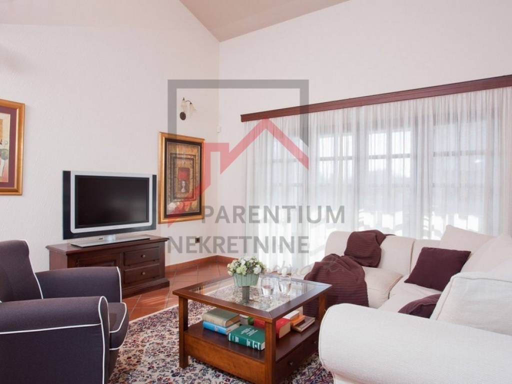 Kuća se prostire na 330 m i odiše elegancijom i prostranošću. U prizemlju se nalazi odvojena kuhinja, blagovaonica te raskošni dnevni boravak s visokim stropovima, stvarajući dojam prozračnosti i luksuza. Tu su i tri prostrane spavaće sobe i tri odvojene kupaonice. Na prvom katu smještena je ekskluzivna master spavaća soba, uz zaseban prostor idealan za ured ili kreativni kutak te dodatna ostava.