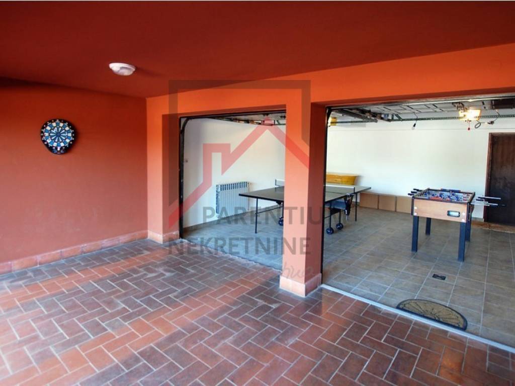 Podrum je praktično organiziran s vešerajem, tehničkom sobom i garažom za više automobila, a unutarnji pristup kući omogućava maksimalnu praktičnost. Kuća je opremljena centralnim grijanjem i klima uređajima za optimalnu temperaturu tijekom cijele godine.