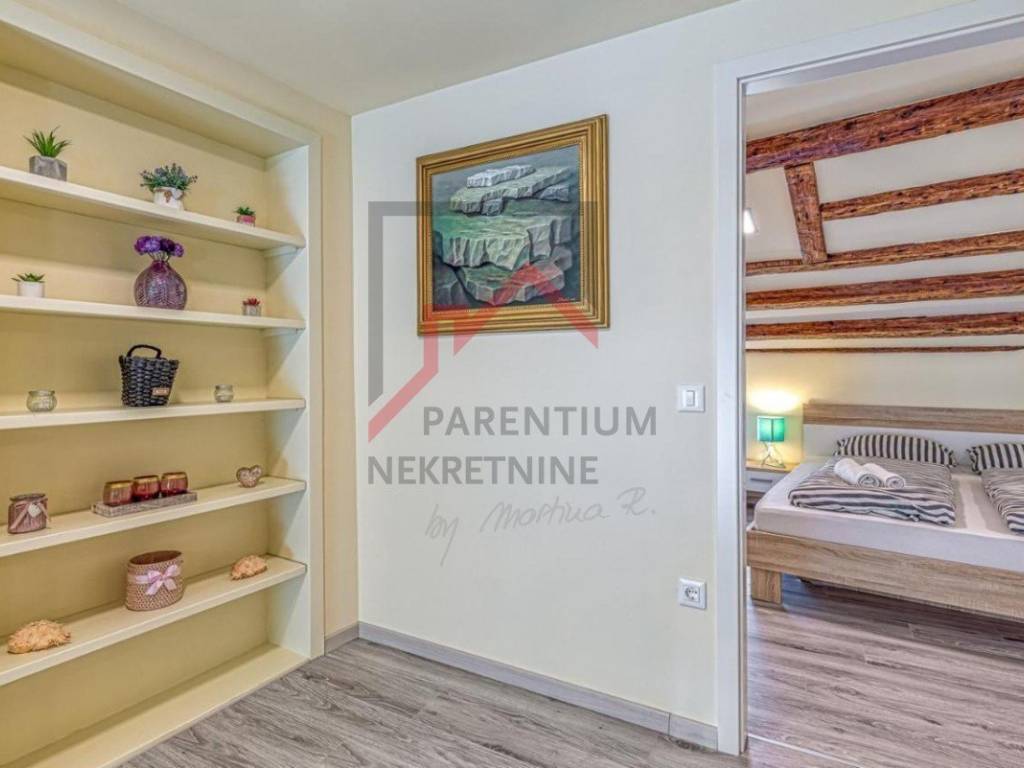 Na trećem katu šarmantne stambene zgrade smjestio se ovaj očaravajući stan od 48 m, pravo utočište u potkrovlju s karakterom. Prostrana spavaća soba, kupaonica i elegantno koncipiran open space dnevni boravak s kuhinjom i blagovaonicom stvaraju osjećaj lakoće i prozračnosti. No, ono što ovaj stan čini neponovljivim jest terasa vaša privatna oaza s koje se pruža božanstven, besprijekorno čist pogled na Jadransko more, gdje se plavetnilo neba stapa s horizontom.