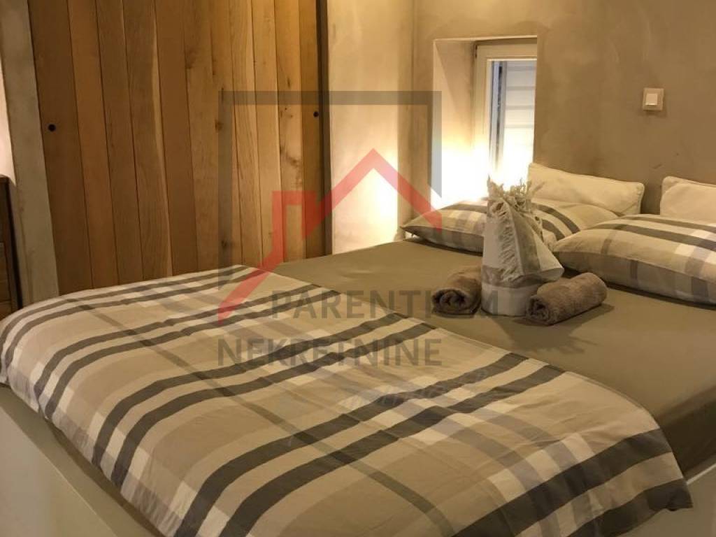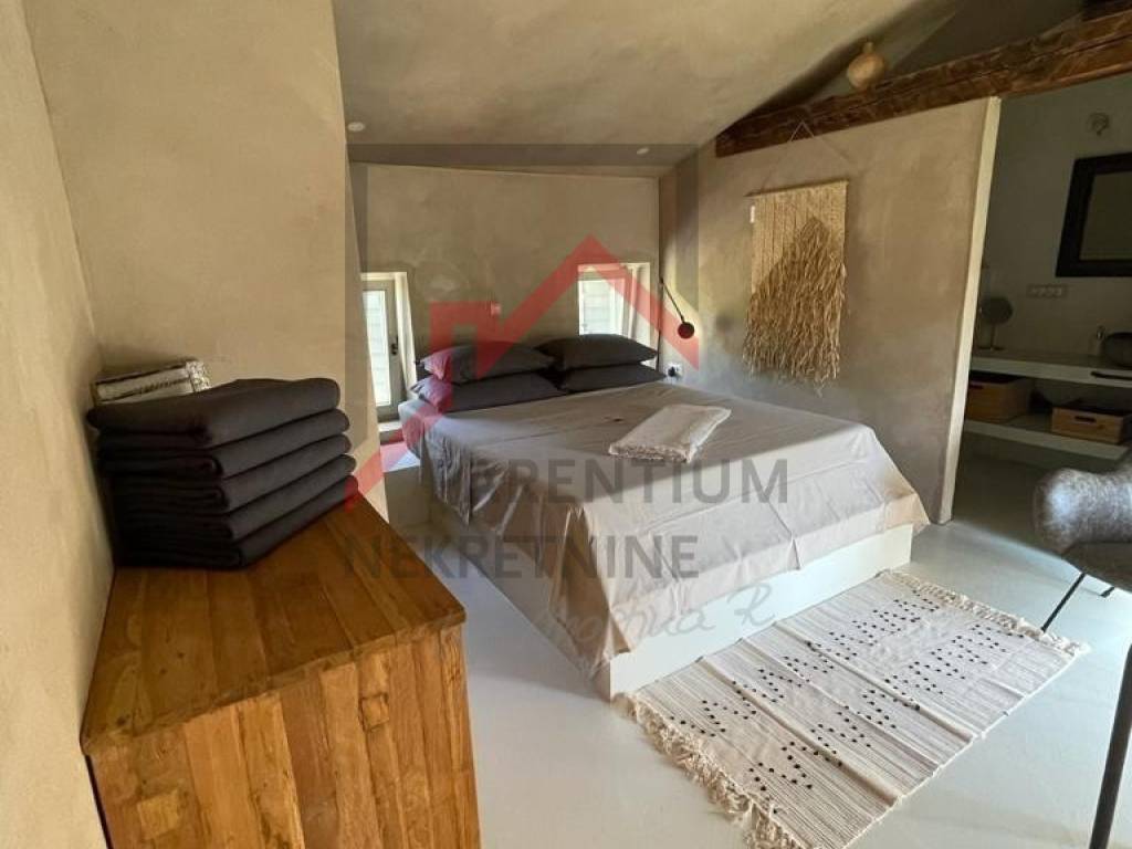 Na katu se nalazi udobna spavaća soba s vlastitom kupaonicom, kreirajući intiman prostor za odmor s pogledom koji oduzima dah. Visokokvalitetni materijali korišteni u renovaciji te dizajnerski odabran namještaj osiguravaju savršenu harmoniju udobnosti i estetike.