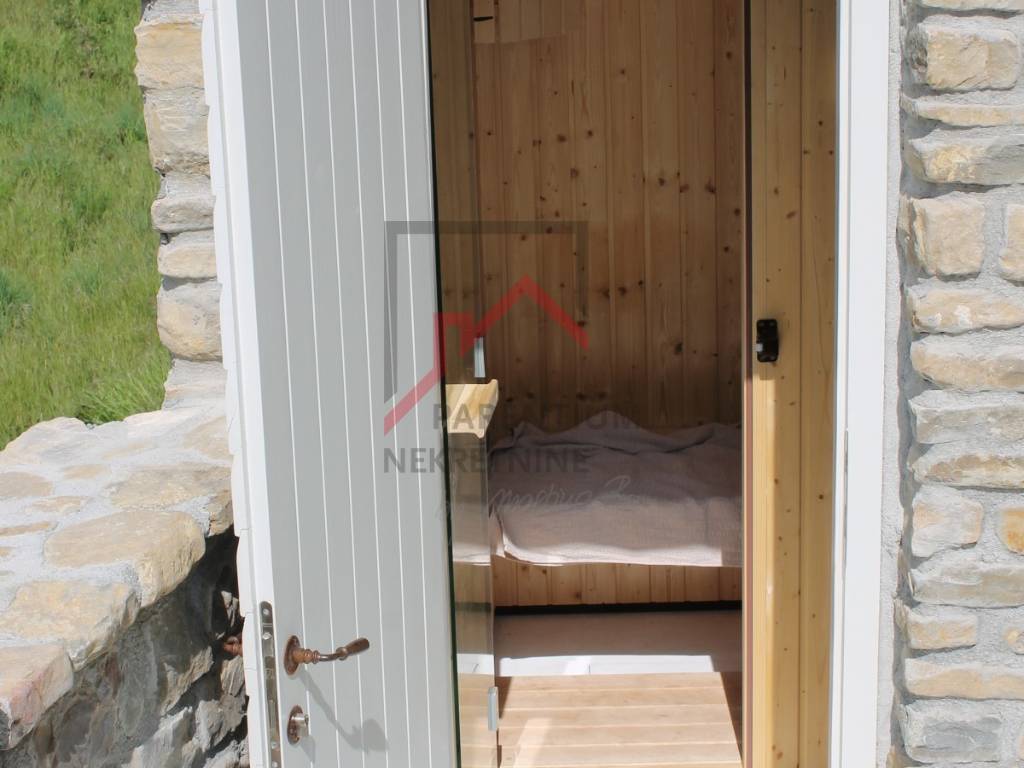 Za potpuni užitak tijekom cijele godine, kuća je opremljena kaminom, podnim grijanjem i klima uređajem, omogućujući savršenu temperaturu u svako doba godine.