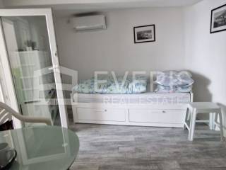 Nalazi se u prizemlju zgrade i sastoji se od predsoblja, sobe, kupaone, kuhinje i dnevnog boravka sa pripadajućom terasom od 11 m2.