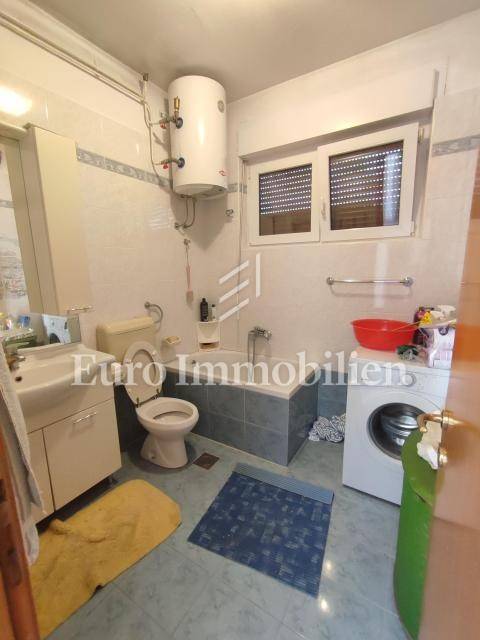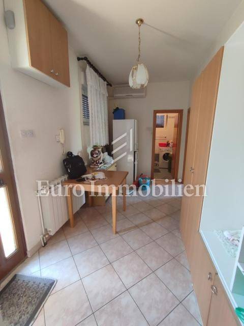 Kuću čine dva stana, prizemni je trenutno u najmu a stan na prvom katu povremeno koristi vlasnik.