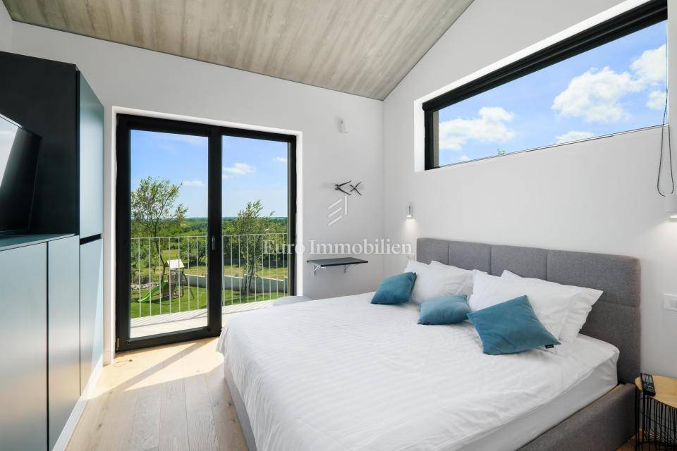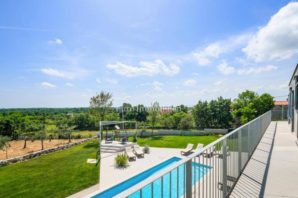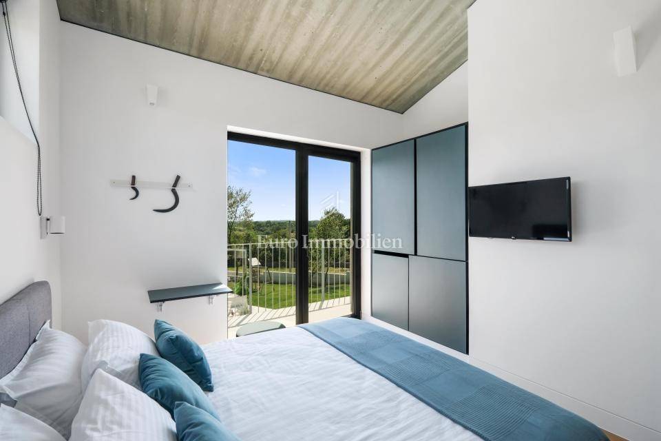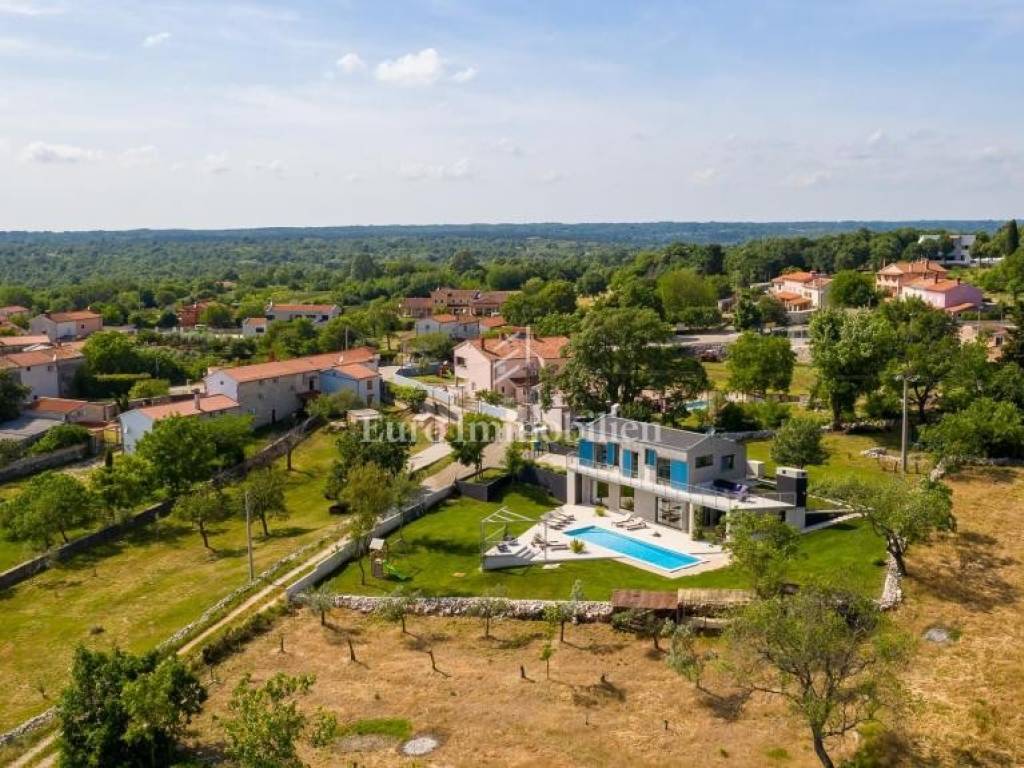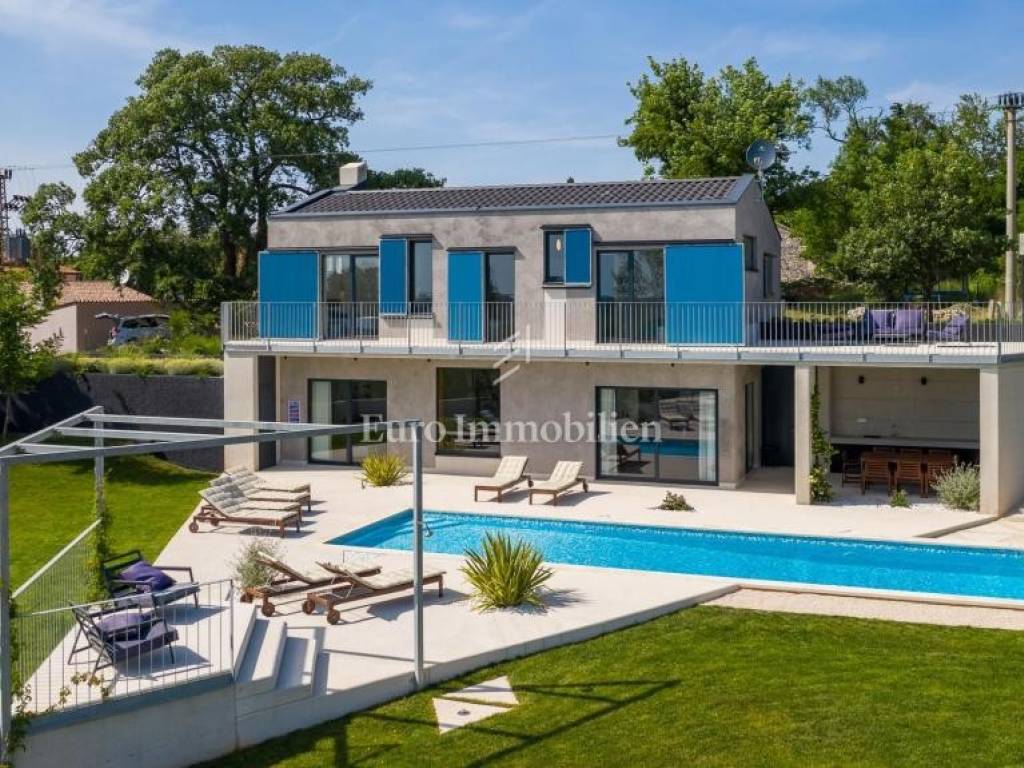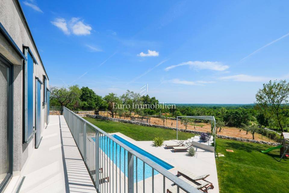 U mirnom malom mjestu u unutrašnjosti Istre prodaje se luksuzna vila s bazenom i otvorenim pogledom na prirodu.