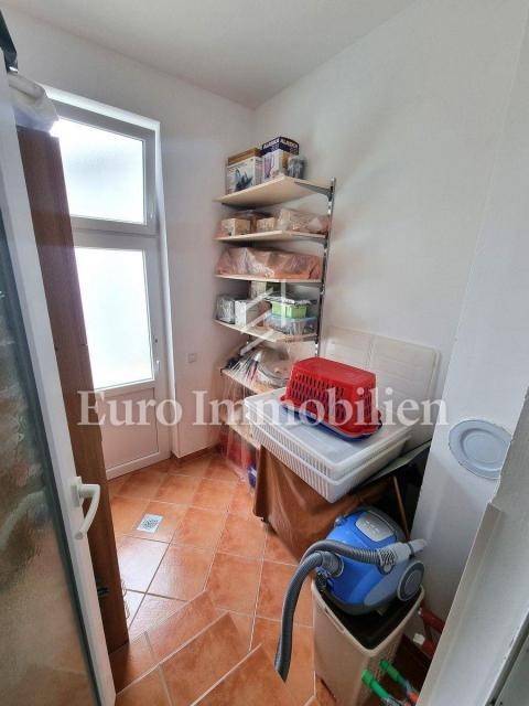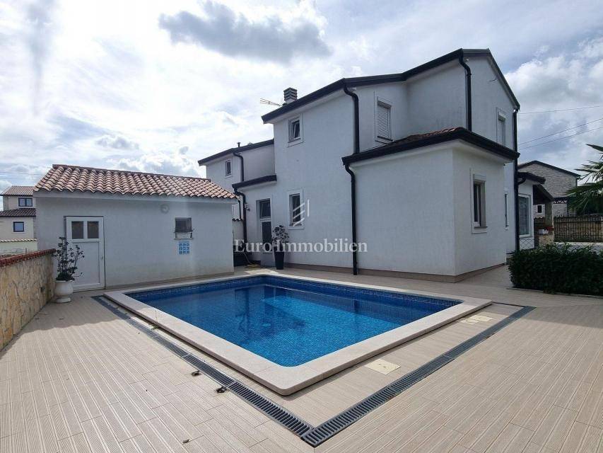 Sastoji se od prizemlja i kata, iza kuće se nalazi vrtna kućica sa spremištima i bazen od 32 m2 s vanjskim tušem.