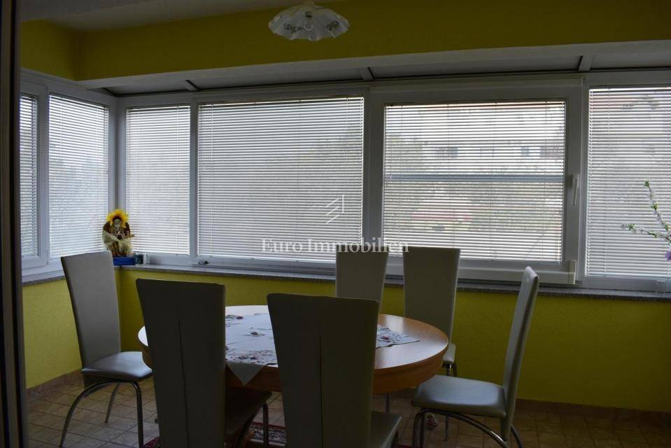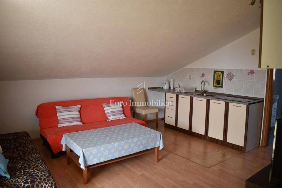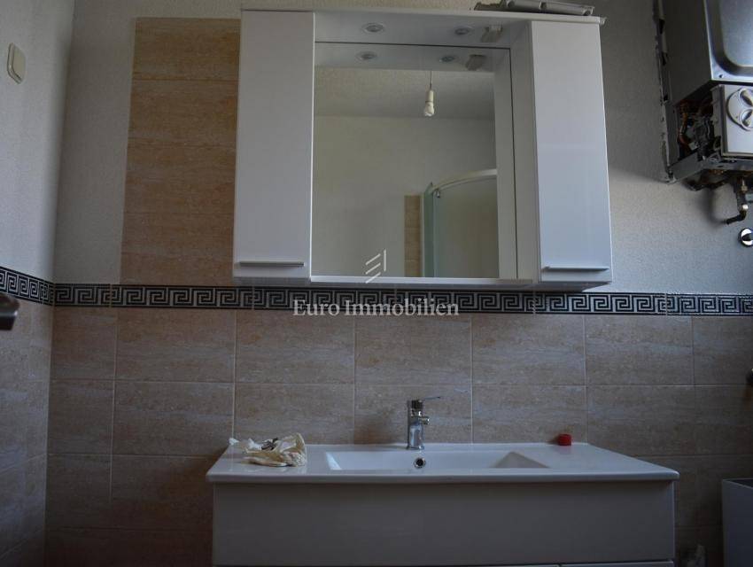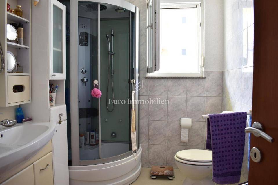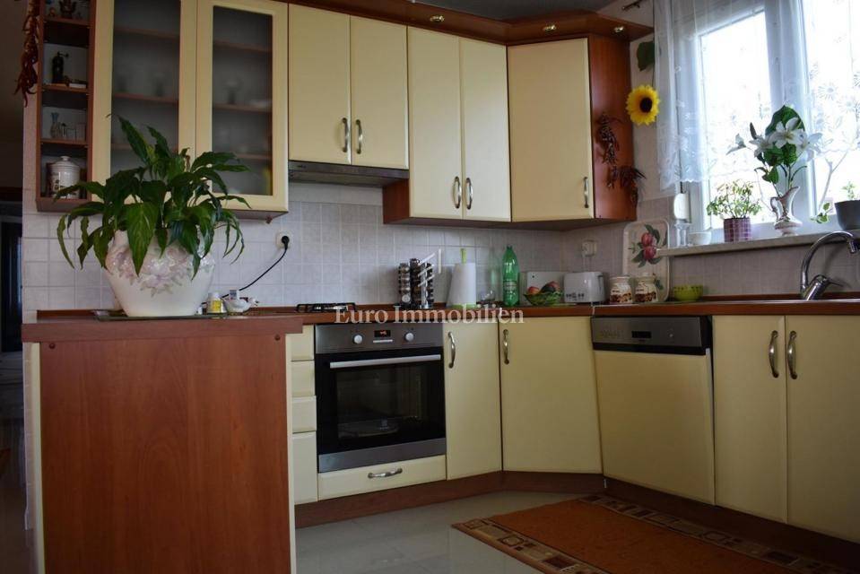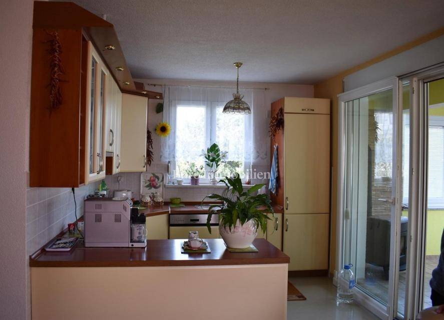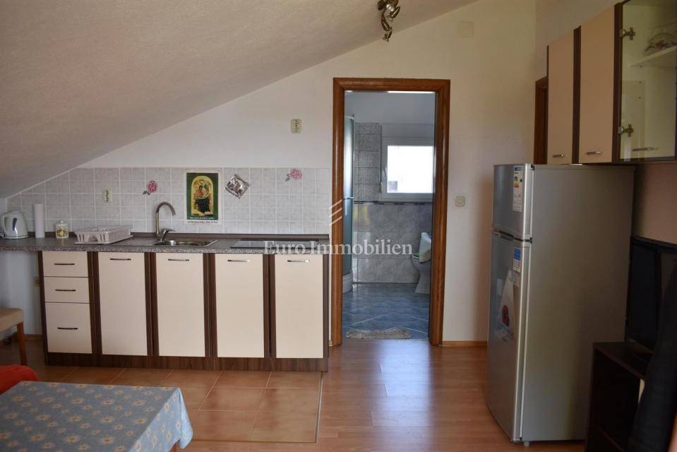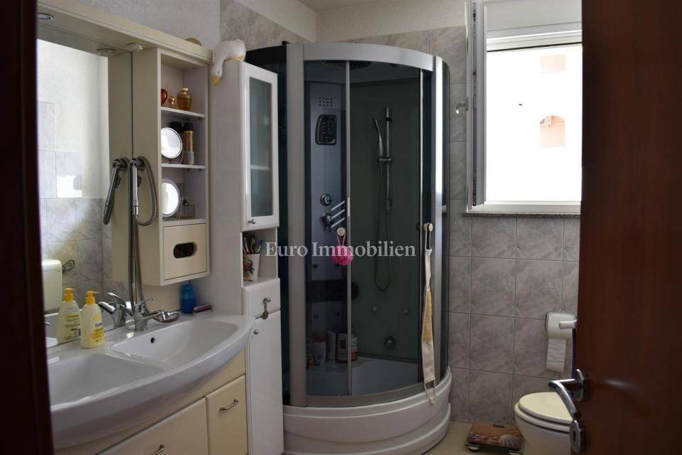 Samostojeća kuća sa tri apartmana na lijepoj lokaciji, udaljena 150 m od mora. Kuća je izgrađena na parceli od 495 m2, proteže se na tri etaže i ima lijepi pogled na more. U prizemlju s nalazi dvosobni apartman, na prvom katu se nalazi trosobni apartman, a u visokom potkrovlju se nalazi dvosobni apartman. Kroz cijelu kuću je provedeno centralno grijanje.