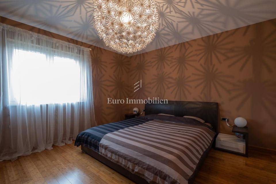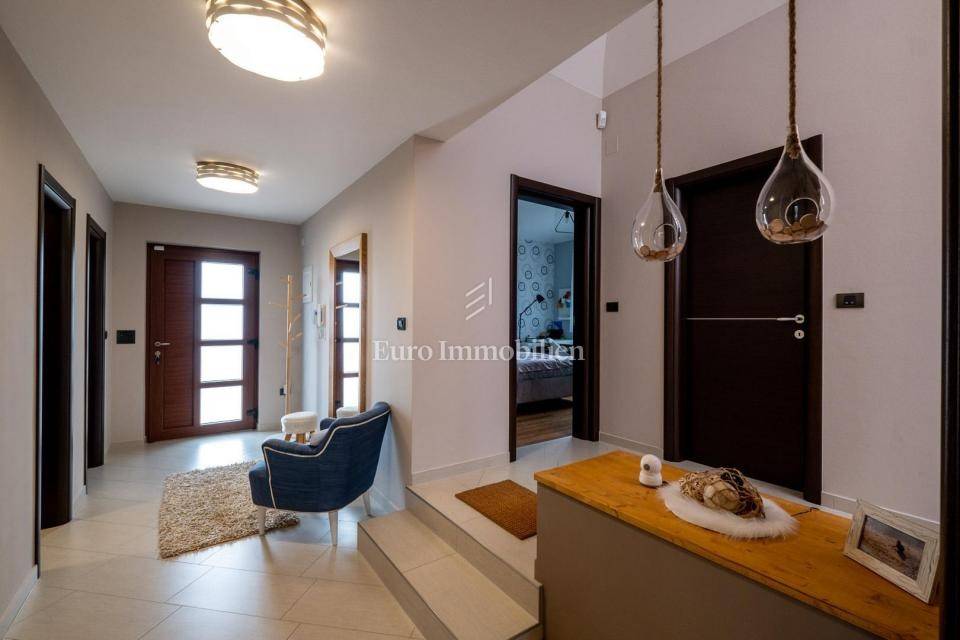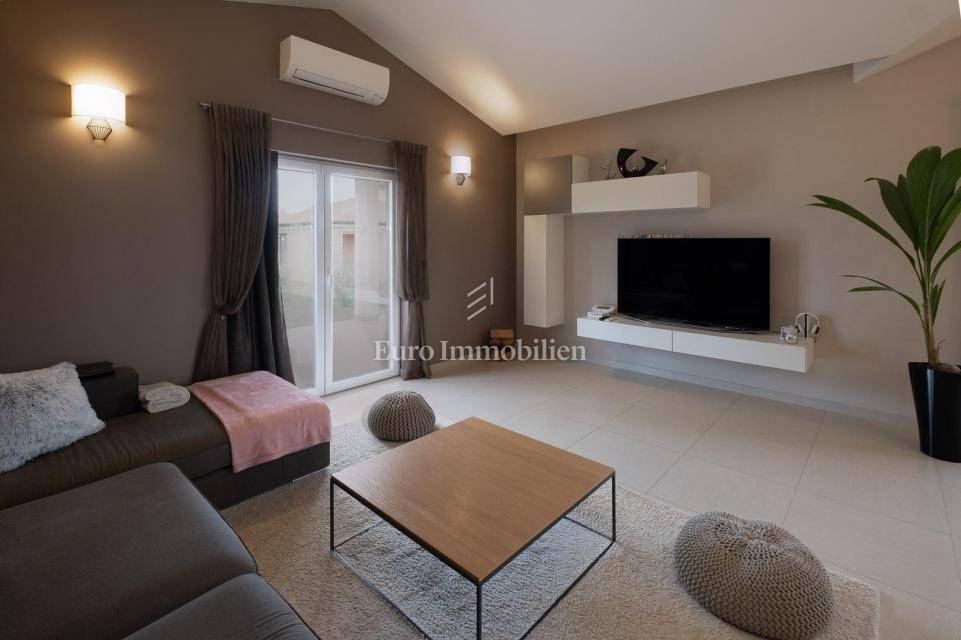 Kuća, površine 157m2, je prizemnica i sastoji se od 3 sobe, 2 kupaonice, open space dnevnog boravka, blagovaonice i kuhinje, ostave i dvije terase.