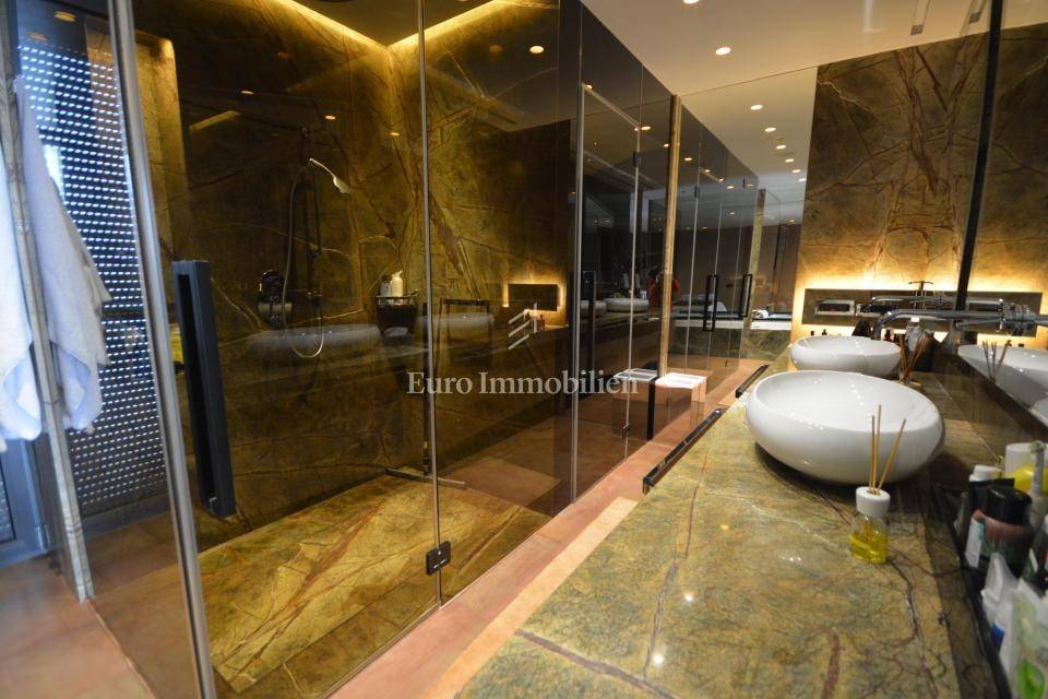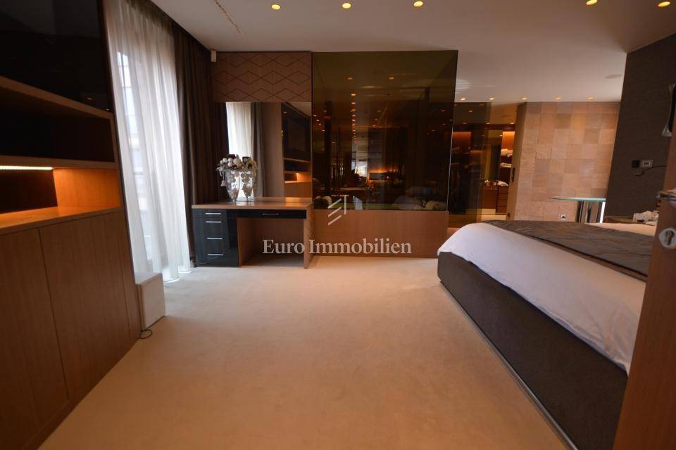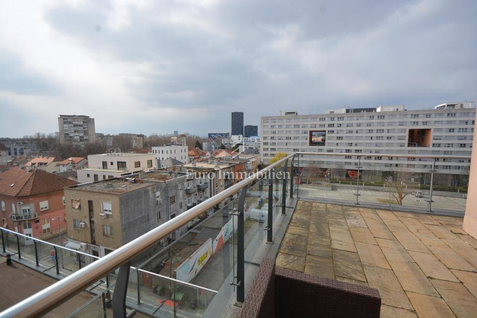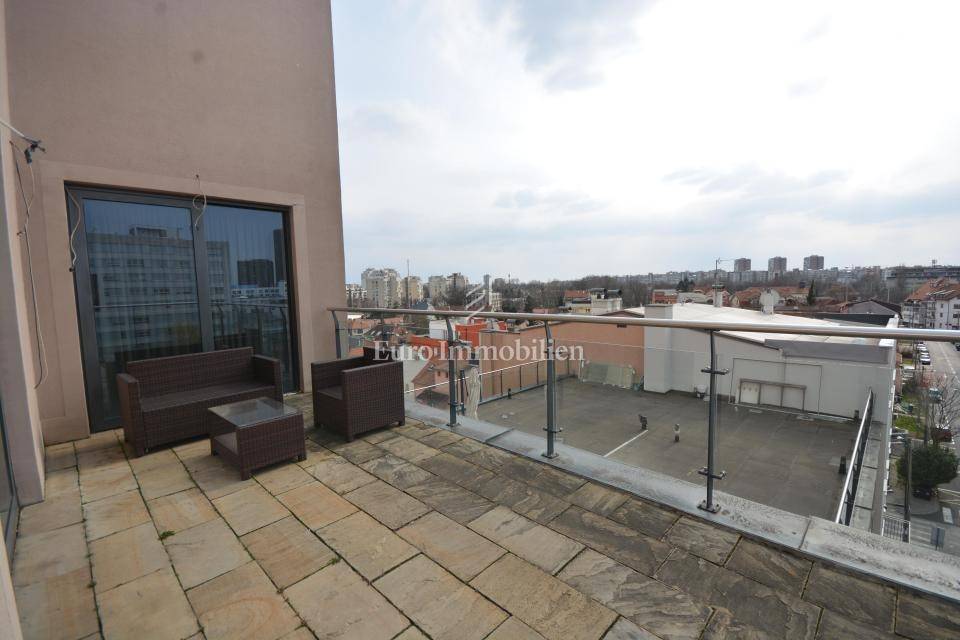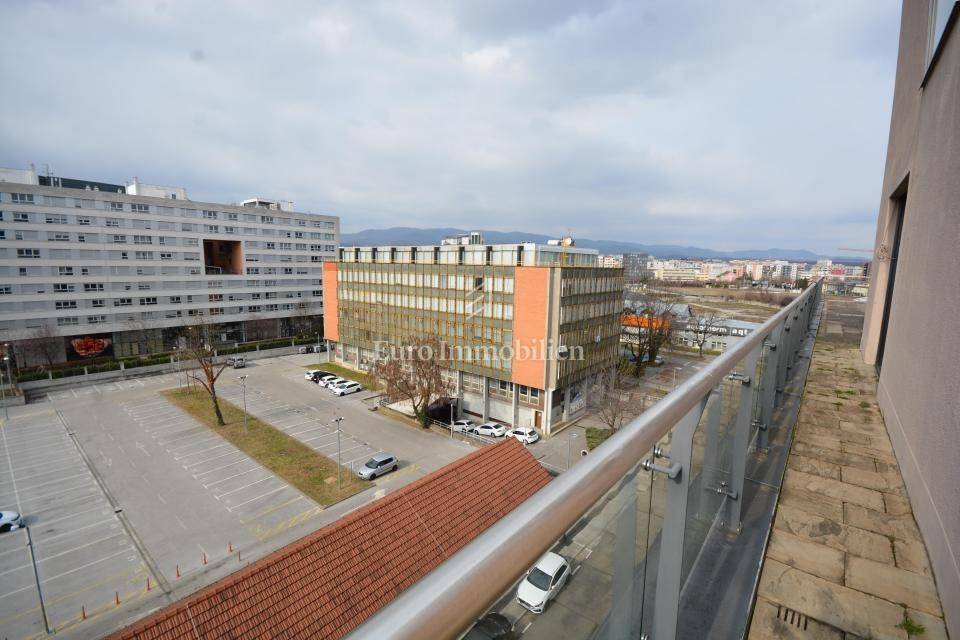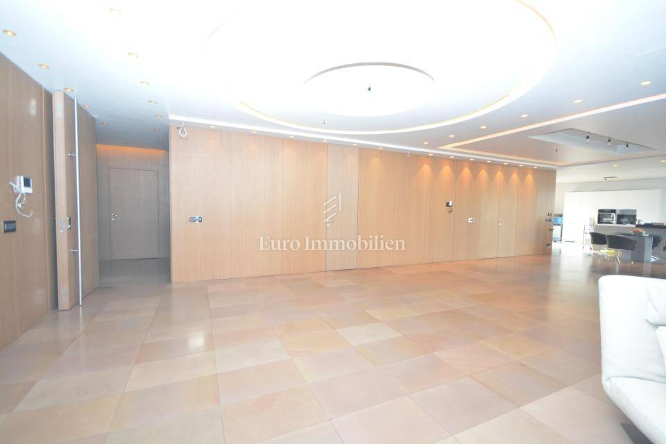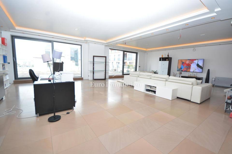 Penthouse na atraktivnoj lokaciji u zapadnom djelu grada u blizini poslovne zone, centra i svih sadržaja. Nalazi se na 5. katu stambene zgrade. Penthouse ima ukupnu neto površinu 276,49 m2. Sastoji se od dnevnog boravka veličine 98,86 m2, 2 prostrane spavaće sobe, 2 kupaonice, kuhinje, blaogovaone i zasebnog toaleta. Iz jedne spavaće sobe ulazi se u luksuznu kupaonicu koja u svom sklopu ima saunu, hidromasažnu kadu i tuš kabinu. Spavaću sobu nadopunjuje garderoba veličine 13,34 m2. Druga spavaća soba ima vlastitu kupaonicu i izlaz na terasu koja okružuje cijeli apartman. Iz kuhinje i dnevnog boravka izlazi se na drugi dio terase veličine 213,20 m2 s koje se pruža pogled na grad. Zgrada kao i stan izrađena je i opremljena visokokvalitetnim materijalima i opremom. Od opreme ugrađene su prvoklasne kamene ploče debljine 3 cm. Sanitarija je marke laufen, miješalice Hansgrohe Axor. Vanjska stolarija je aluminijska s dvostrukim izo ostakljenjem, ugrađena su protuprovalna ulazna vrata i alarmni sustav. Grijanje je centralno (toplana) podno uključujući i dio terase. KNX sustav upravljanja - grijanje, hlađenje, rasvjeta, podizanje i spuštanje roleta. SONOS multi room sustav. Video nadzor je postavljen unutar i van zgrade. Zgrada je prilagođena osobama s invaliditetom i ima 2 lifta, a stanu pripadaju 3 parkirna mjesta u garaži na - 2 etaži. Liftovi vode direktno iz garaže u stan. Odlična povezanost s gradskim prijevozom (blizina autobusnih i tramvajskih stanica) isto kao i brza mogućnost izlaza na sve autoceste. Stan se može pretvoriti u manje stambene jedinice ili u poslovni prostor.