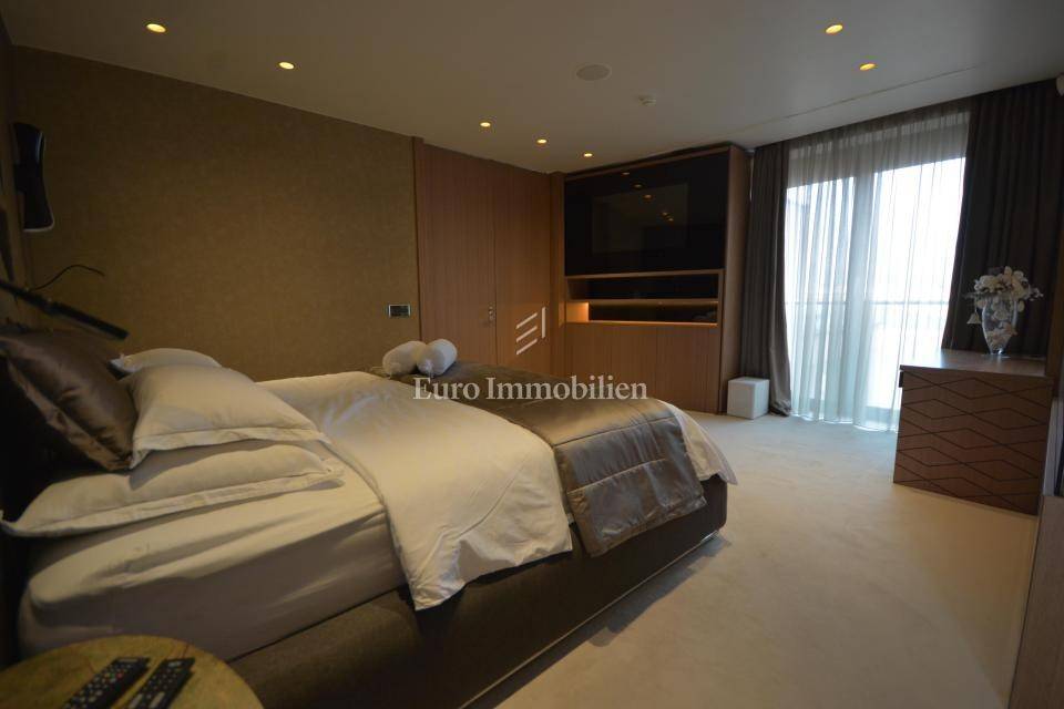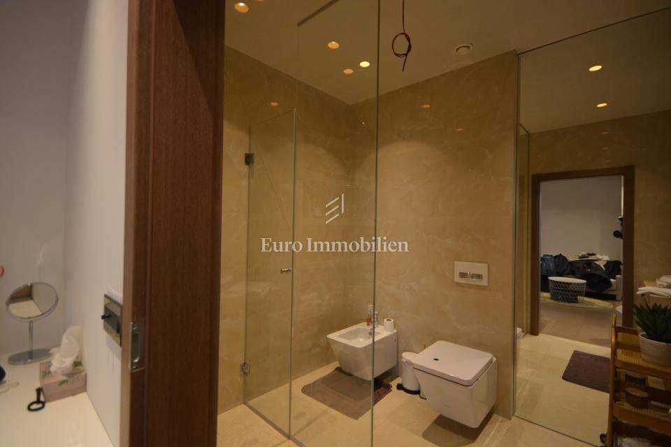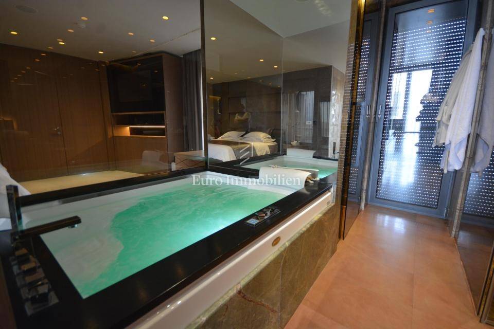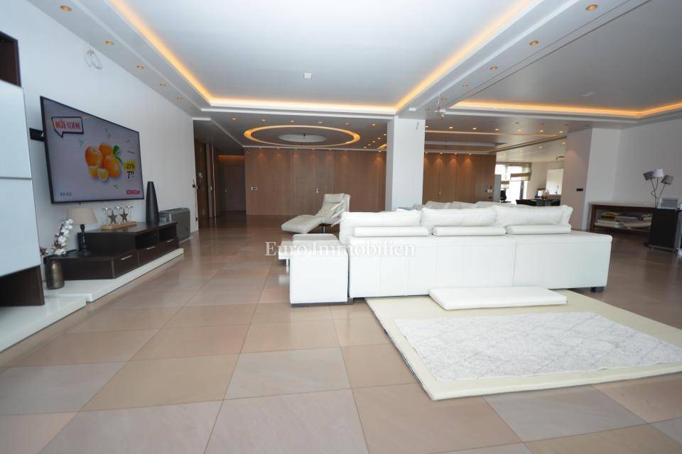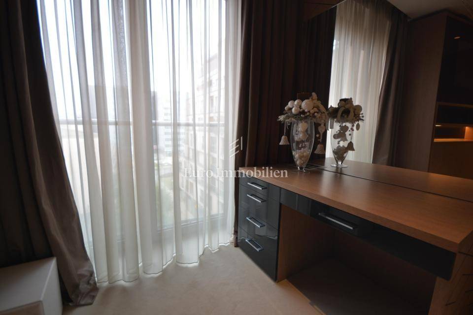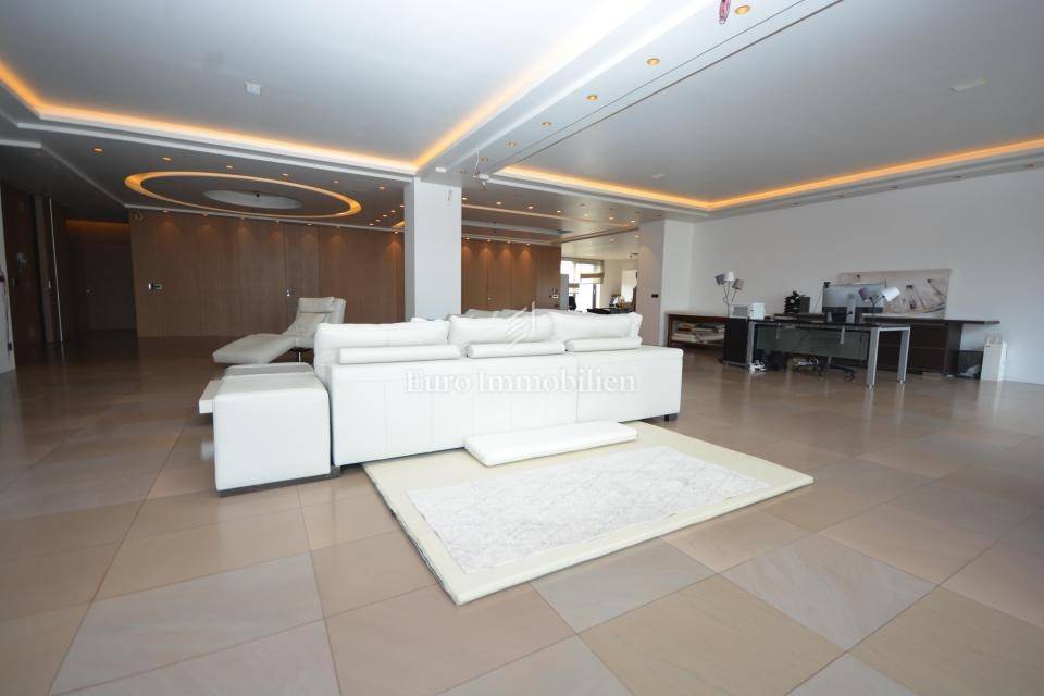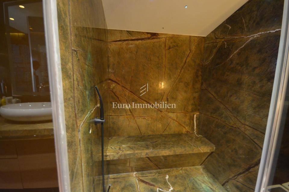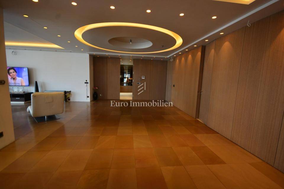 Penthouse na atraktivnoj lokaciji u zapadnom djelu grada u blizini poslovne zone, centra i svih sadržaja. Nalazi se na 5. katu stambene zgrade. Penthouse ima ukupnu neto površinu 276,49 m2. Sastoji se od dnevnog boravka veličine 98,86 m2, 2 prostrane spavaće sobe, 2 kupaonice, kuhinje, blaogovaone i zasebnog toaleta. Iz jedne spavaće sobe ulazi se u luksuznu kupaonicu koja u svom sklopu ima saunu, hidromasažnu kadu i tuš kabinu. Spavaću sobu nadopunjuje garderoba veličine 13,34 m2. Druga spavaća soba ima vlastitu kupaonicu i izlaz na terasu koja okružuje cijeli apartman. Iz kuhinje i dnevnog boravka izlazi se na drugi dio terase veličine 213,20 m2 s koje se pruža pogled na grad. Zgrada kao i stan izrađena je i opremljena visokokvalitetnim materijalima i opremom. Od opreme ugrađene su prvoklasne kamene ploče debljine 3 cm. Sanitarija je marke laufen, miješalice Hansgrohe Axor. Vanjska stolarija je aluminijska s dvostrukim izo ostakljenjem, ugrađena su protuprovalna ulazna vrata i alarmni sustav. Grijanje je centralno (toplana) podno uključujući i dio terase. KNX sustav upravljanja - grijanje, hlađenje, rasvjeta, podizanje i spuštanje roleta. SONOS multi room sustav. Video nadzor je postavljen unutar i van zgrade. Zgrada je prilagođena osobama s invaliditetom i ima 2 lifta, a stanu pripadaju 3 parkirna mjesta u garaži na - 2 etaži. Liftovi vode direktno iz garaže u stan. Odlična povezanost s gradskim prijevozom (blizina autobusnih i tramvajskih stanica) isto kao i brza mogućnost izlaza na sve autoceste. Stan se može pretvoriti u manje stambene jedinice ili u poslovni prostor.