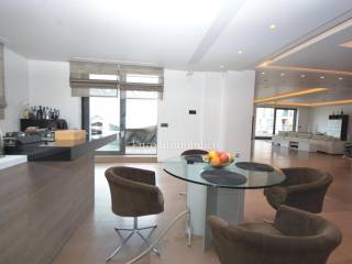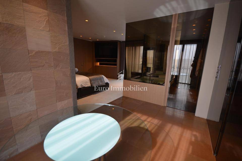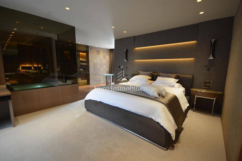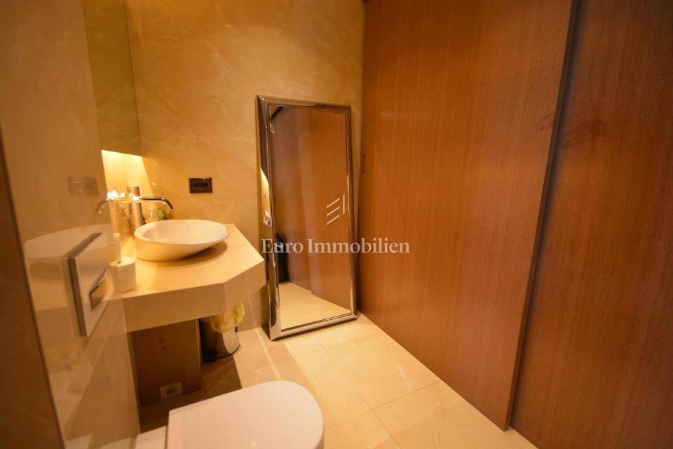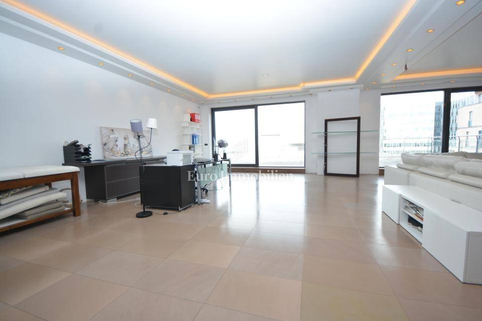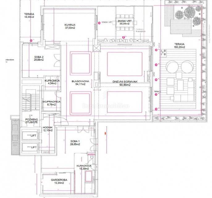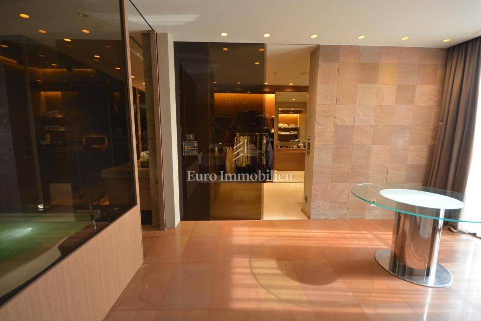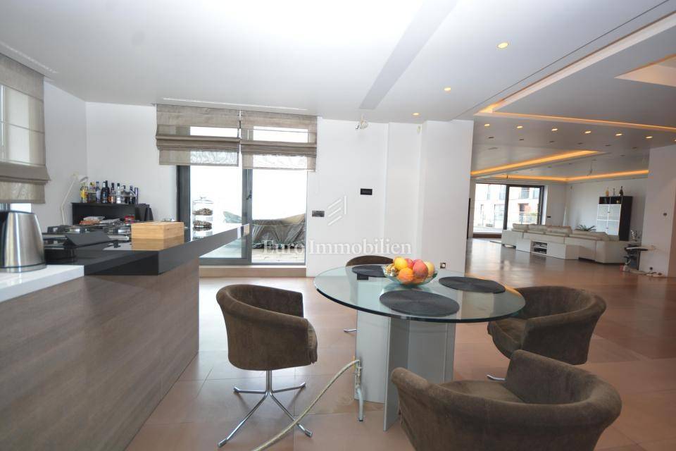 Penthouse na atraktivnoj lokaciji u zapadnom djelu grada u blizini poslovne zone, centra i svih sadržaja. Nalazi se na 5. katu stambene zgrade. Penthouse ima ukupnu neto površinu 276,49 m2. Sastoji se od dnevnog boravka veličine 98,86 m2, 2 prostrane spavaće sobe, 2 kupaonice, kuhinje, blaogovaone i zasebnog toaleta. Iz jedne spavaće sobe ulazi se u luksuznu kupaonicu koja u svom sklopu ima saunu, hidromasažnu kadu i tuš kabinu. Spavaću sobu nadopunjuje garderoba veličine 13,34 m2. Druga spavaća soba ima vlastitu kupaonicu i izlaz na terasu koja okružuje cijeli apartman. Iz kuhinje i dnevnog boravka izlazi se na drugi dio terase veličine 213,20 m2 s koje se pruža pogled na grad. Zgrada kao i stan izrađena je i opremljena visokokvalitetnim materijalima i opremom. Od opreme ugrađene su prvoklasne kamene ploče debljine 3 cm. Sanitarija je marke laufen, miješalice Hansgrohe Axor. Vanjska stolarija je aluminijska s dvostrukim izo ostakljenjem, ugrađena su protuprovalna ulazna vrata i alarmni sustav. Grijanje je centralno (toplana) podno uključujući i dio terase. KNX sustav upravljanja - grijanje, hlađenje, rasvjeta, podizanje i spuštanje roleta. SONOS multi room sustav. Video nadzor je postavljen unutar i van zgrade. Zgrada je prilagođena osobama s invaliditetom i ima 2 lifta, a stanu pripadaju 3 parkirna mjesta u garaži na - 2 etaži. Liftovi vode direktno iz garaže u stan. Odlična povezanost s gradskim prijevozom (blizina autobusnih i tramvajskih stanica) isto kao i brza mogućnost izlaza na sve autoceste. Stan se može pretvoriti u manje stambene jedinice ili u poslovni prostor.