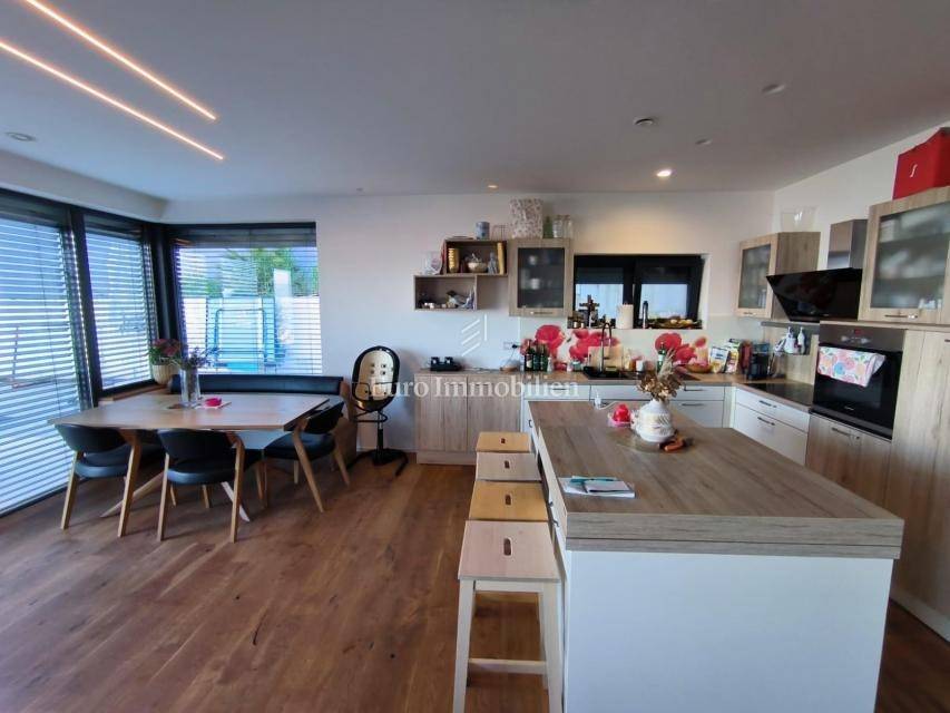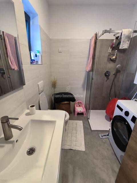 Podno grijanje i Fan-coil sustav spojeni su na dizalicu topline, centralna rekuperacija zraka u kući, alu stolarija s električnim roletama, troslojan hrastov parket, prvoklasna keramika. Kvalitetan namještaj je biran sa stilom te je također u cijeni.