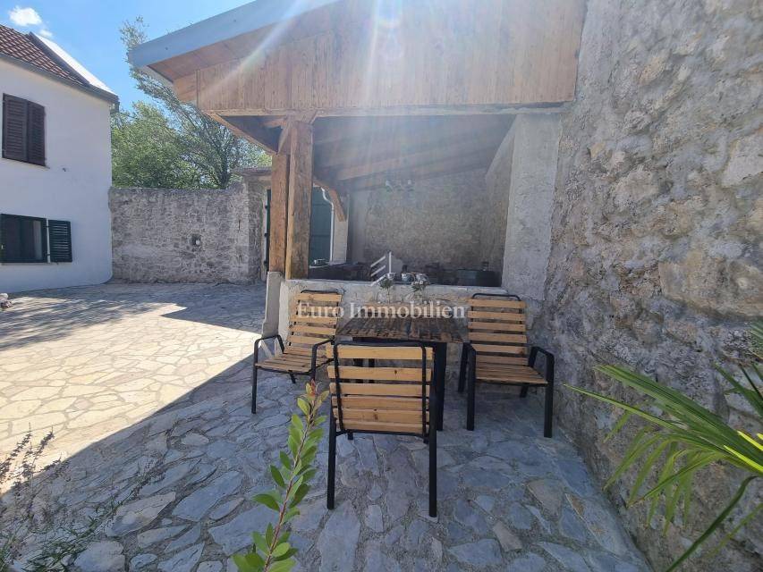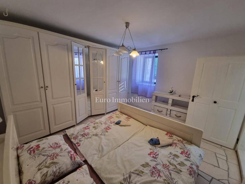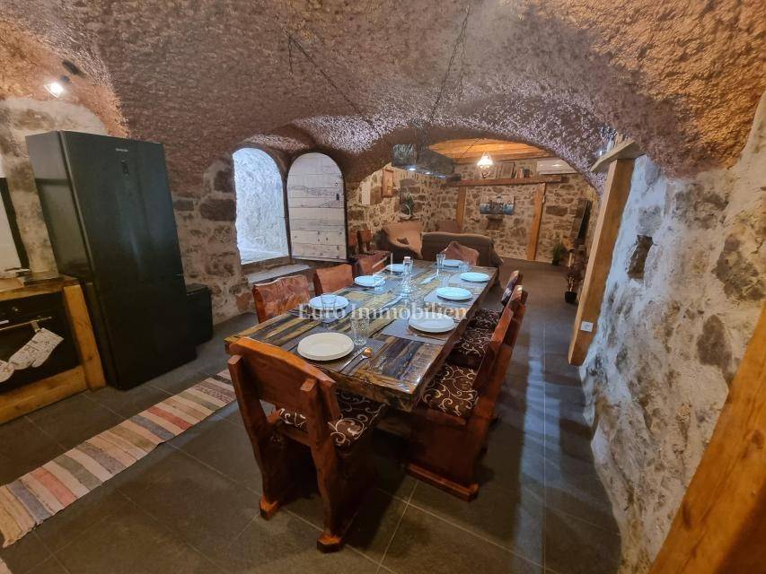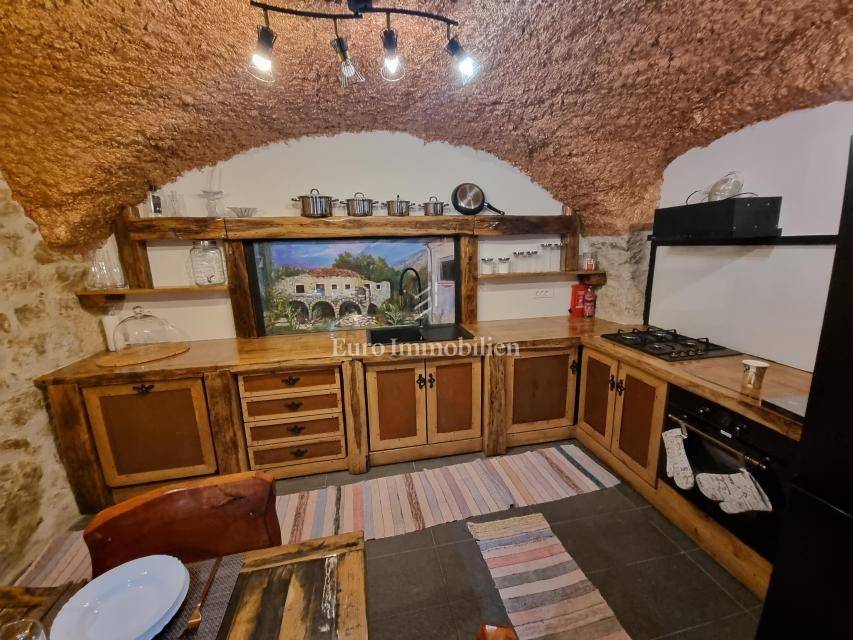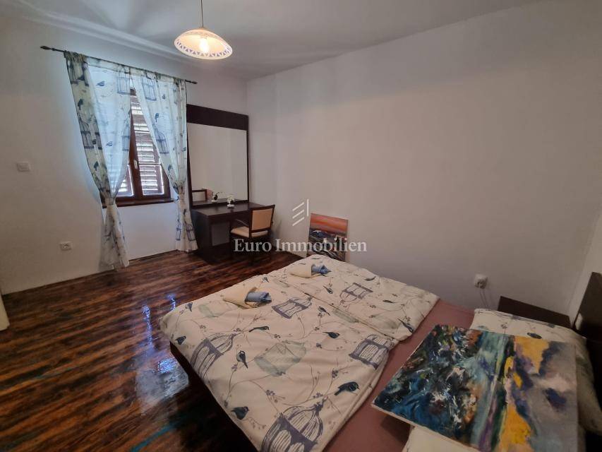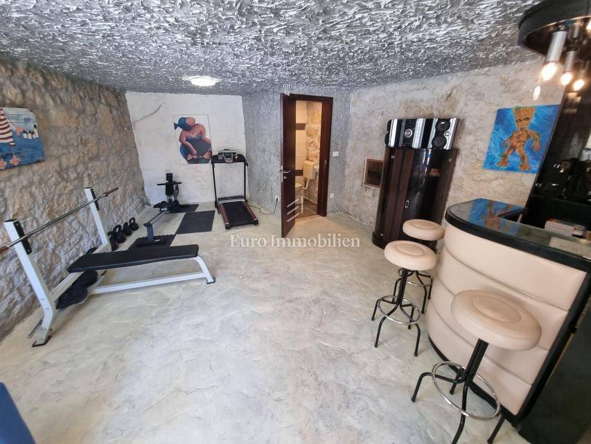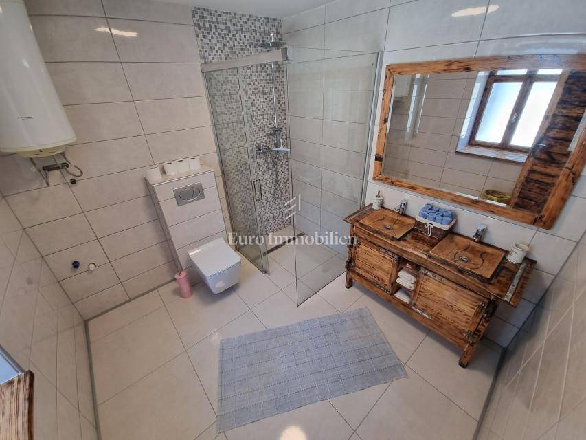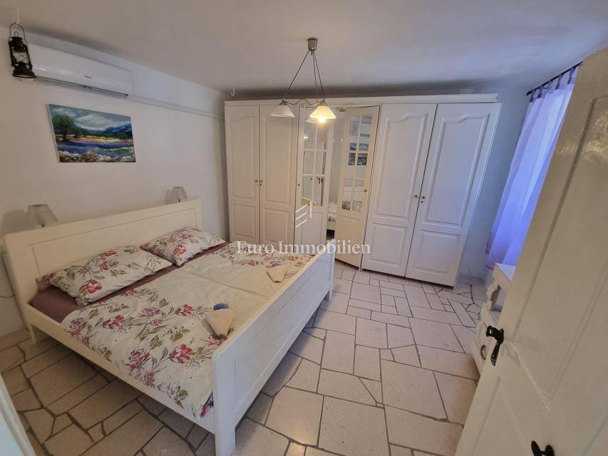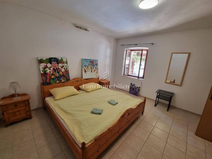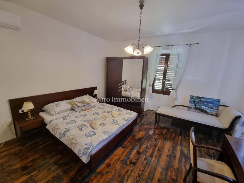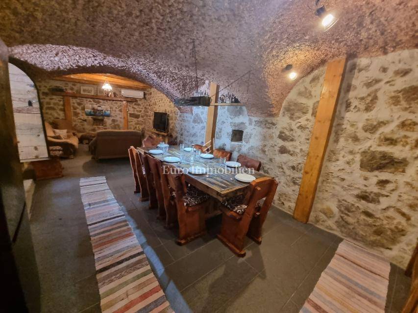 U prvoj kući, koja se sastoji od prizemlja i kata, nalaze se spavaća soba, kupaonica i toalet. Unutarnjim stubištem se dolazi na kat gdje su prostrane dvije spavaće sobe. U drugoj kući u prizemlju se nalazi konoba u kojoj su smješteni dnevni boravak i kuhinja. U prostoriji sa zasebnim vanjskim ulazom je fitness soba te toalet. Vanjskim stubištem se dolazi na terasu sa koje se ulazi na katu druge kuće gdje se nalazi spavaća soba, kupaonica, te dodatna prostorija. Nekretnina idealna za bavljenje turizmom!