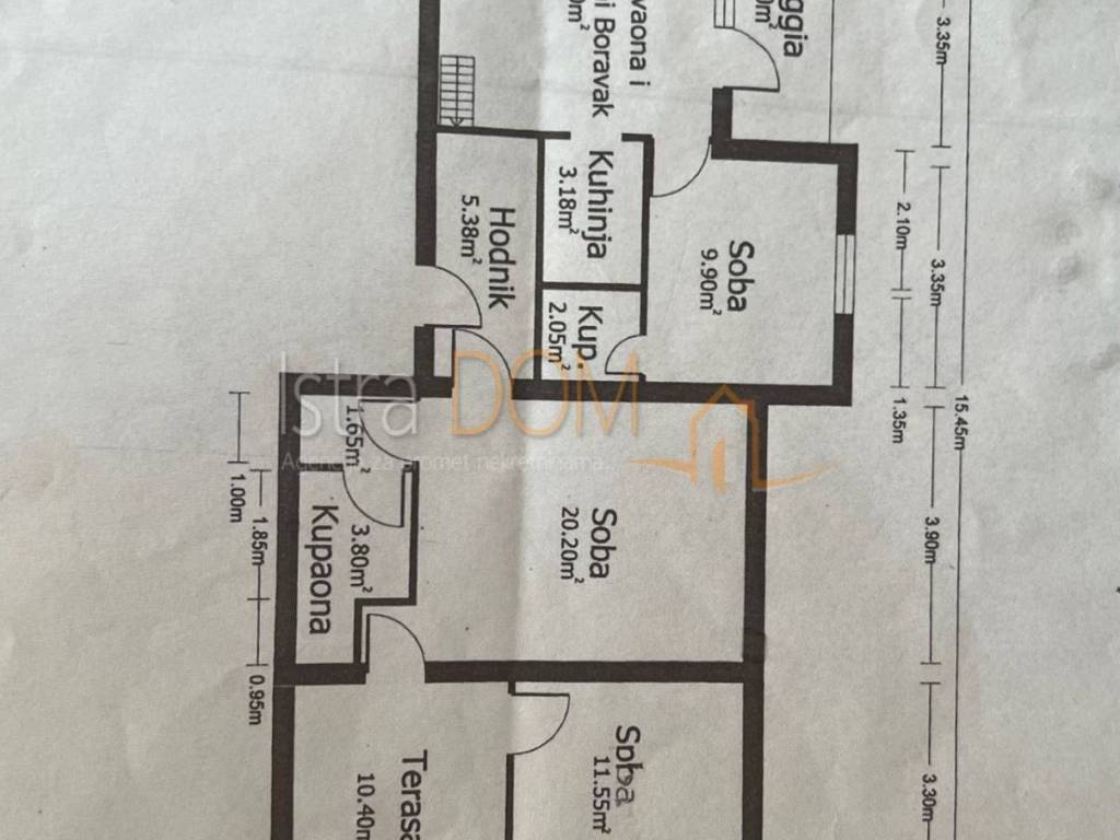 Stan je reducirane površine 87,39 m2, te se sastoji od : ulaznog hodnika, 3 spavaće sobe, 2 kupaonice, dnevnog boravka, 2 kuhinje