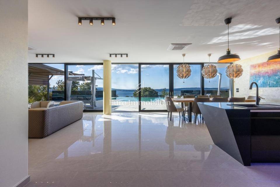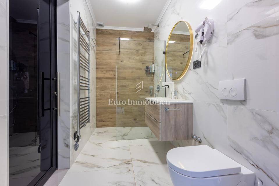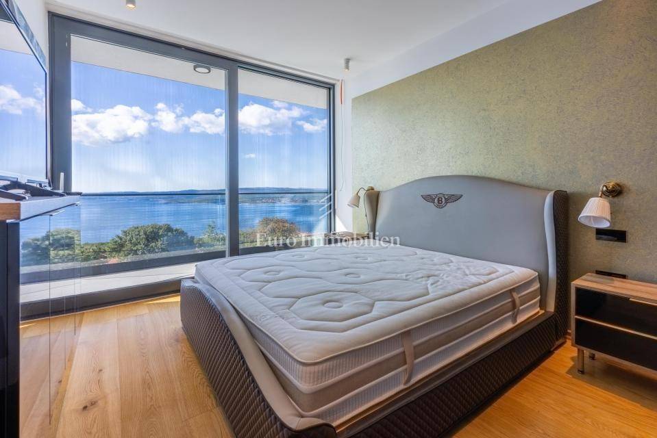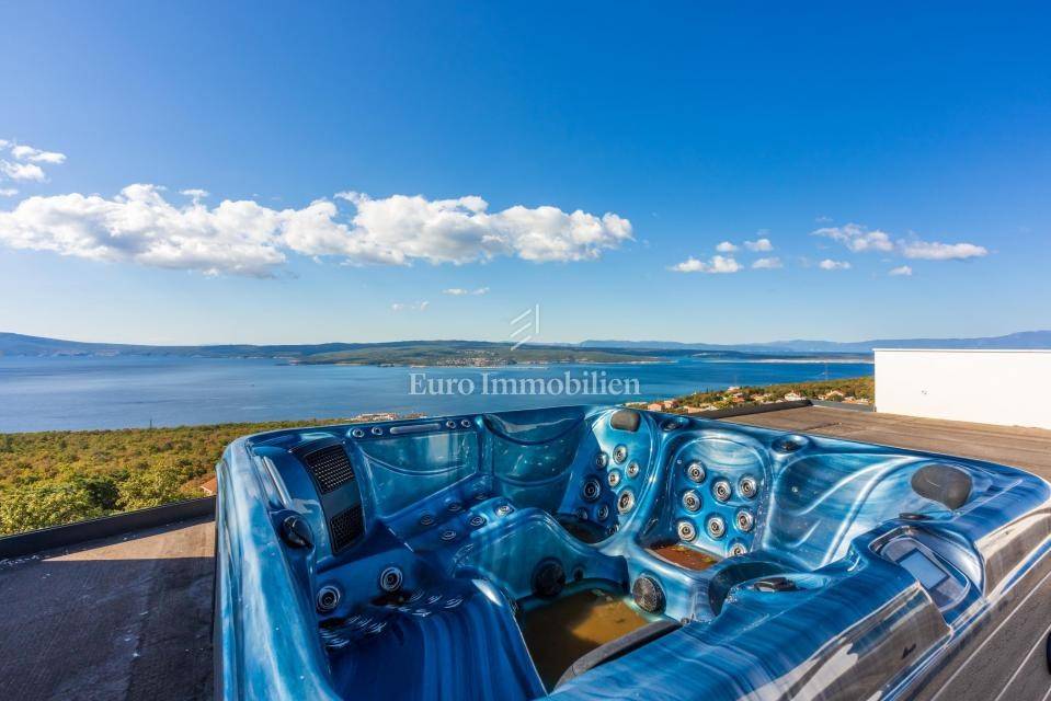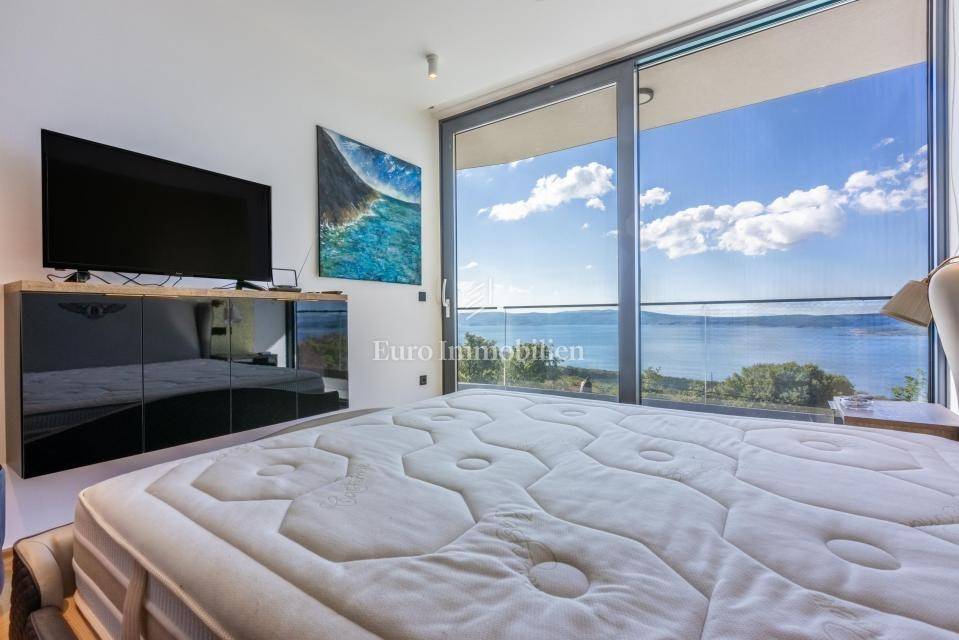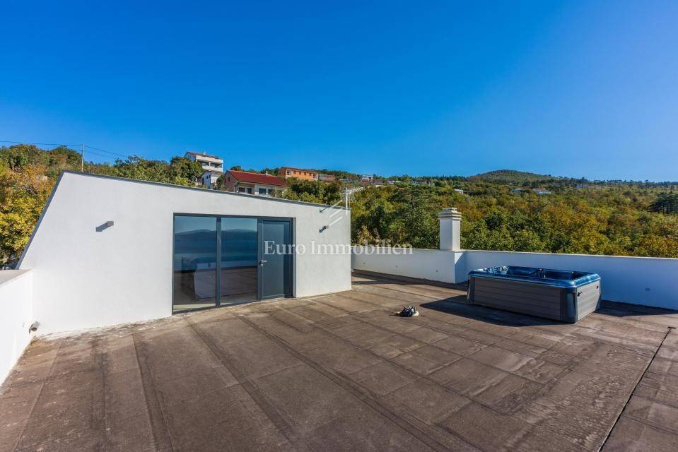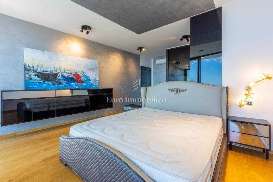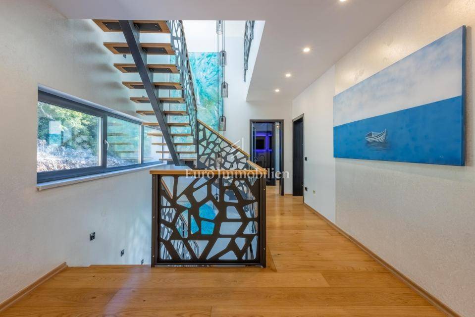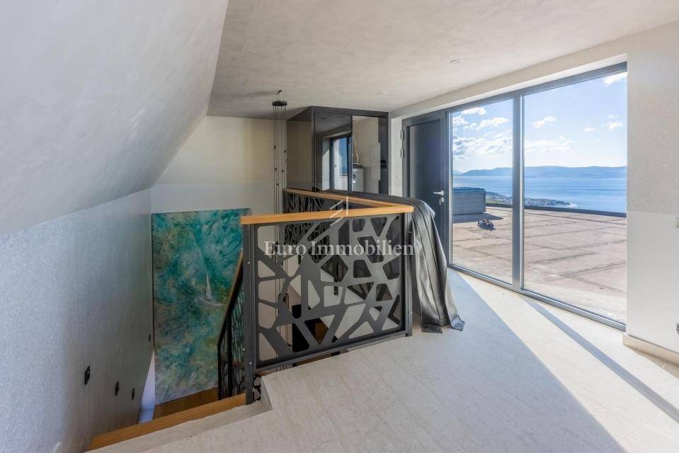 Stubište vodi na kat gdje su smještene tri spavaće sobe svaka sa vlastitom kupaonicom i balkonom, dok je na zadnjoj etaži krovna terasa sa sunčalištem i jacuzzijem i prekrasnim pogledom na more