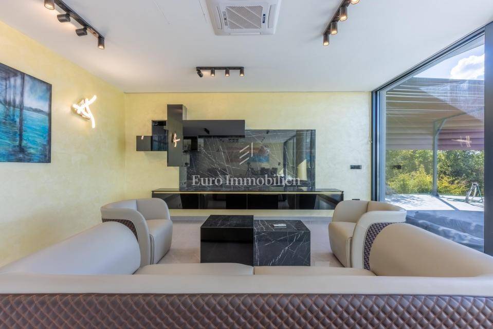 Samostojeća luksuzna kuća potpuno namještena i opremljena dizajnerskim,ekskluzivnim namještajem i umjetničkim slikama nagrađivanog akademskog slikara.