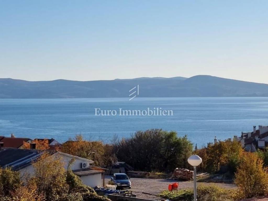 Samostojeća kuća u urbanom dijelu Crikvenice s četiri garaže i velikim parkirnim prostorom ispred istih.