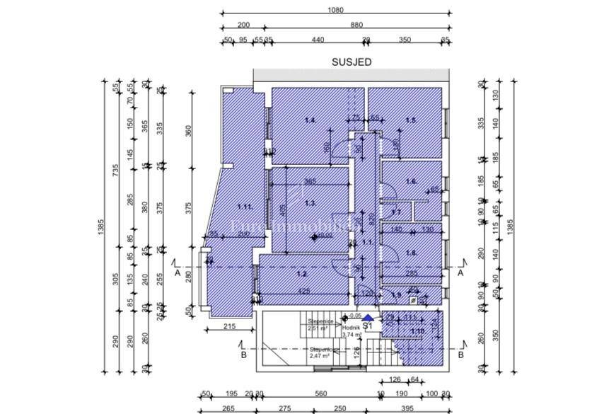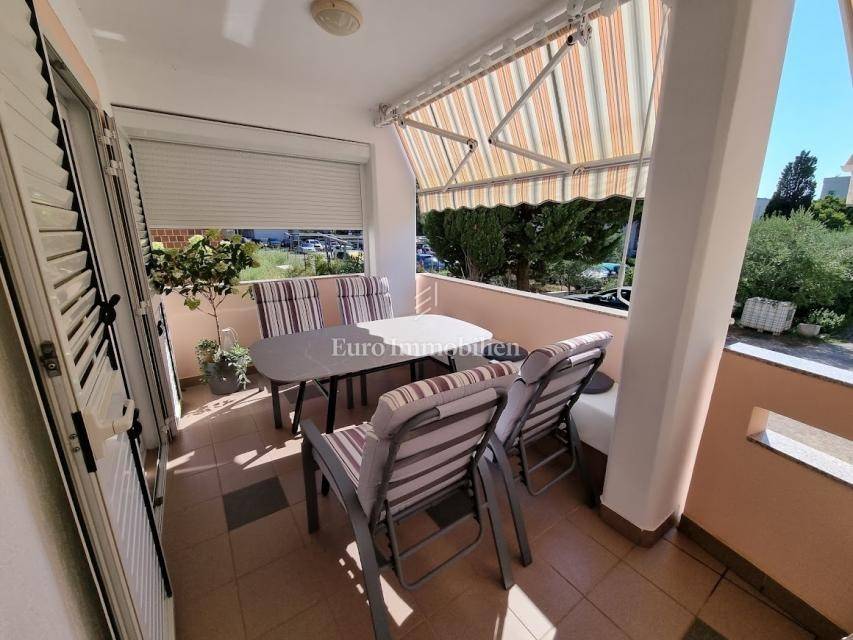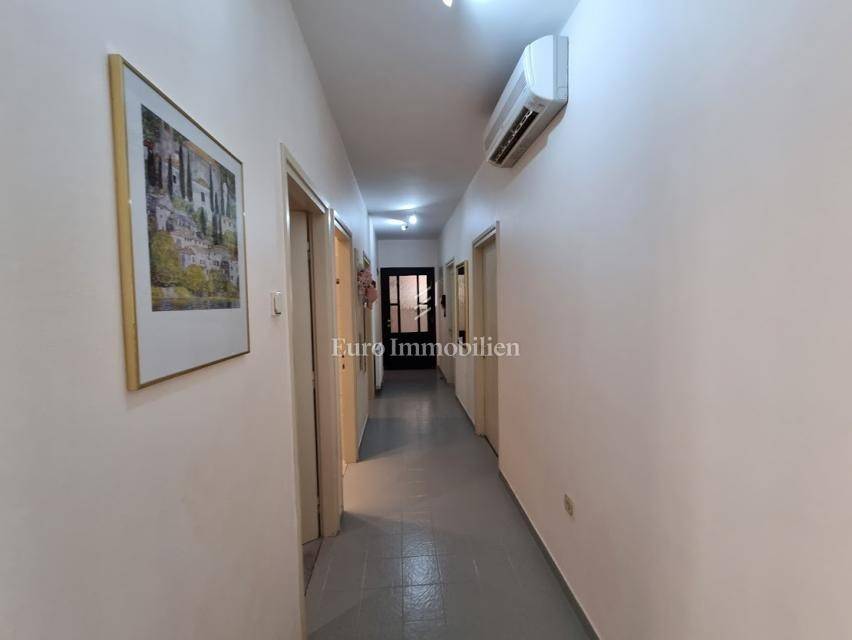 Prodaje se stan površine 111,36 m2 brutto u visokom prizemlju manje stambene zgrade. Stan se sastoji od tri spavaće sobe, dnevnog boravka s kuhinjom i blagovaonom, kupaone, toaleta i prostrane terase. Stan ima dva spremišta.