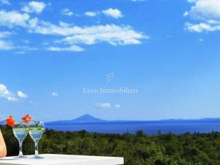 Kuća se sastoji od: Prizemlja, gdje se nalazi prostrana kuhinja s blagovaonicom i dnevnim boravkom s velikim staklenim stijenama, izlaz na terasu s nevjerojatnim pogledom, gostinjski toalet, spremište i ostava, te kata, na kojem su tri prostrane spavaće sobe i dvije kupaonice, uz izlaz na terasu s otvorenim pogledom na more. Svaka prostorija opremljena je klima uređajem. Na okućnici se nalazi bazen sa sunčalištem. Kuća također ima spremište, garažu te dodatni objekt koji se može prilagoditi potrebama kupca, ovisno o željama.