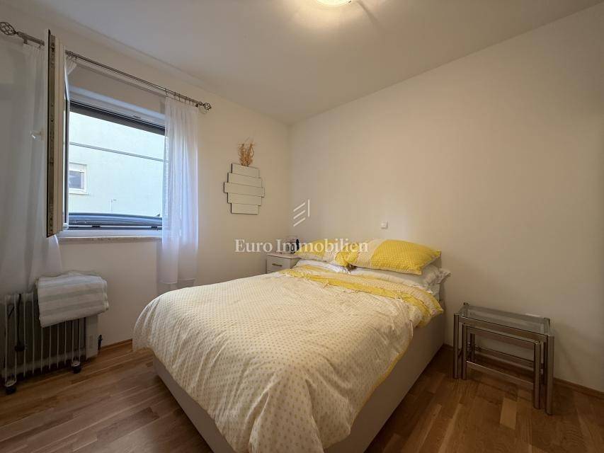 Prodaje se stan u Promajni, smješten u trećem redu od mora. Stan je potpuno namješten i ima prostranu, južno orijentiranu terasu s vrtom, klimatizaciju u svim sobama, podno grijanje, kalijevu peć, vanjski roštilj te natkriveni dio za parkiranje. Kvalitetnu gradnju upotpunjuju vrhunski materijali: hrastov parket, kamen, keramika prve klase i SmartHome sustavi. Stanu pripadaju dvije ostave u podrumu.