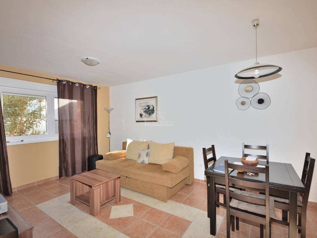 Zadar, Diklo - prodaje se jednnosoban stan u prizemlju manje zgrade. Stan se nalazi u zgradi s ukupno 5 stambenih jedinica izgrađenoj 2012 godine. Stan ukupne neto površine 45,20m2 sastoji se od ulaza, spavaće sobe, kupaonice, boravka s kuhinjom i blagovaonicom te terase koja ima izlaz u vrt. Stanu pripadaju dva parkirna mjesta, svaki površine 3.10m2 ( s koeficijentom) tako da ukupna neto korisna površina stana iznosi 51,40 m2.