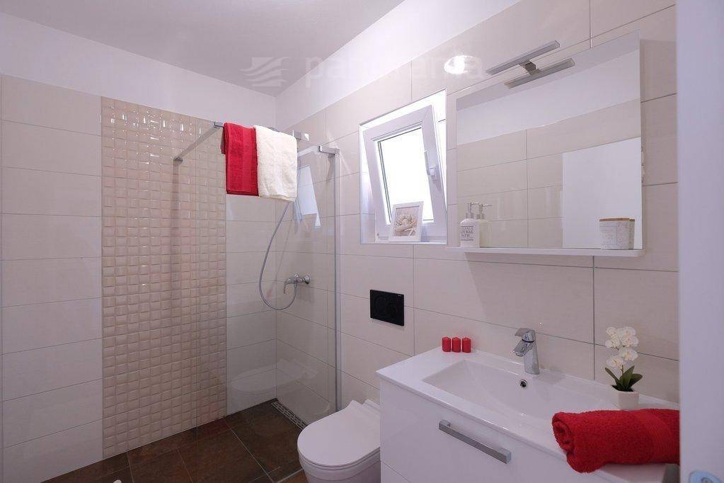 Sastoji se od prizemlja i kata, od čega je u prizemlju dnevni boravak s kuhinjom i blagovaonicom, natkrivena terasa, spavaća soba i kupaonica, a na katu 3 spavaće sobe, terasa, 2 kupaonice i predsoblje. Uz to je u prizemlju sa zasebnim ulazom i tehnička soba, te spremište.