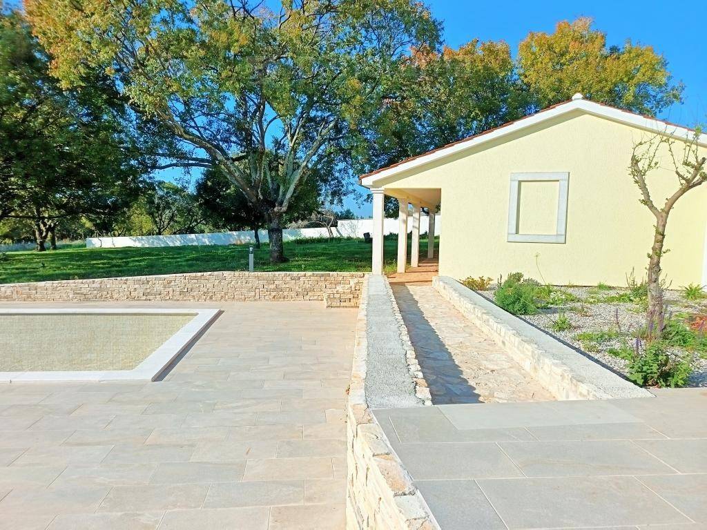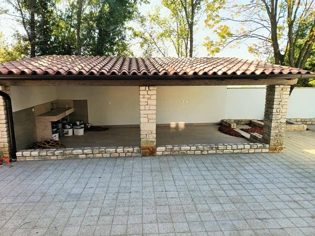 Kući pripada i vanjska, izdvojena, natkrivena ljetna kuhinja, koja se nalazi pored bazena.