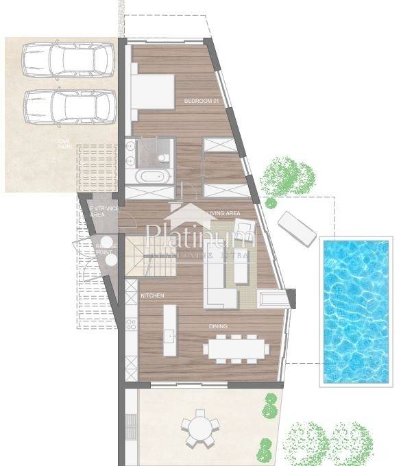 Nedaleko Labina, na mirnoj lokaciji obavijenom zelenilom, gradi se ova prekrasna vila.