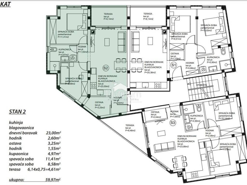Prodajemo stanove na 1. i 2. katu sa pripadajućim garažama (16m2-25m2).