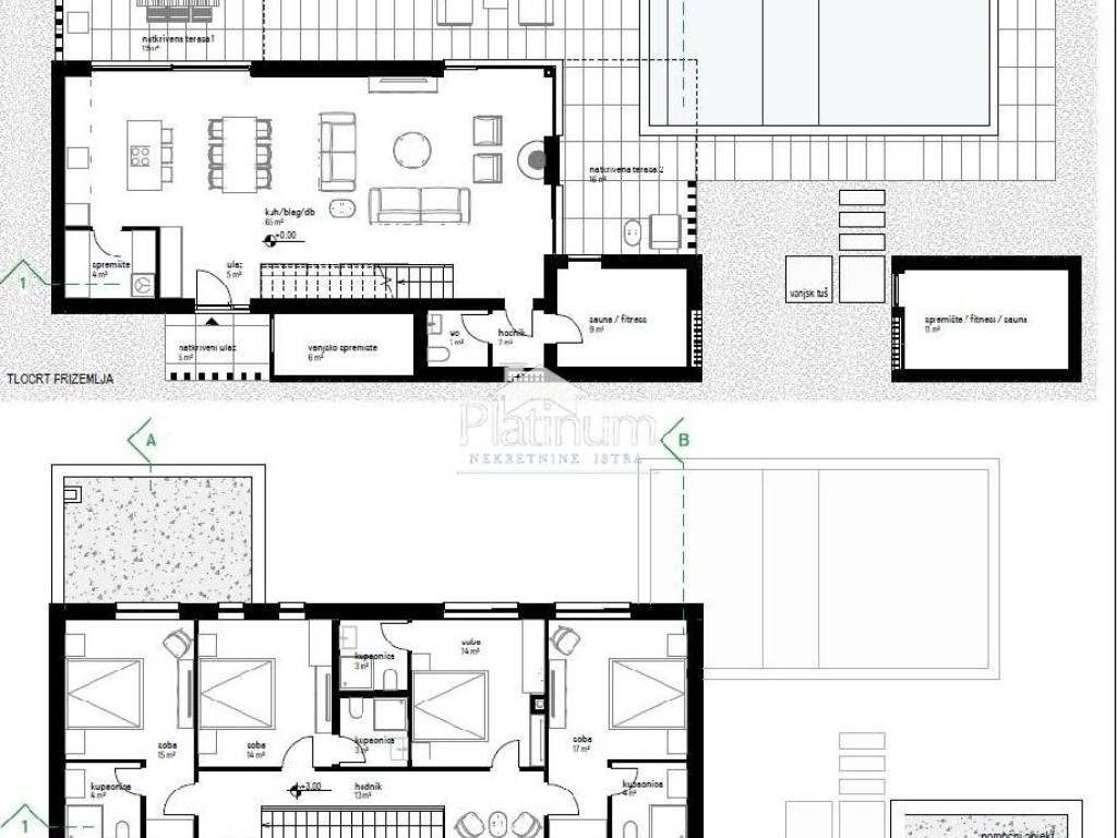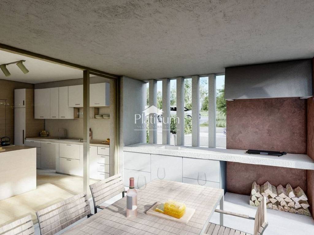 U okolici Labina, prodaje se više vila u izgradnji koje se sastoje od prizemlja i kata na velikoj okućnici. U prizemlju se sastoji od dnevnog dijela s kuhinjom, blagovaonom, spremištem, wc, prostoriju za saunu/fitness te natkrivenom terasom sa ljetnom kuhinjom i grijanim bazenom 9x5,3m2 (sastoji se od plitkog i dubljeg dijela). Na katu se nalaze četiri spavaće sobe s pripadajućim kupaonicama i izlazom na terasu.