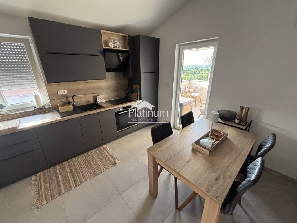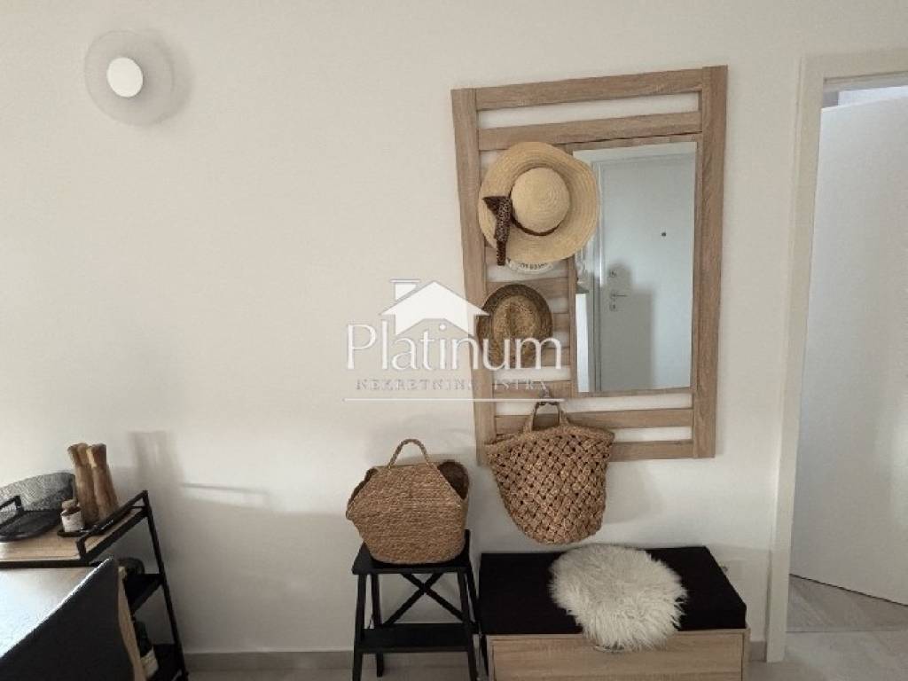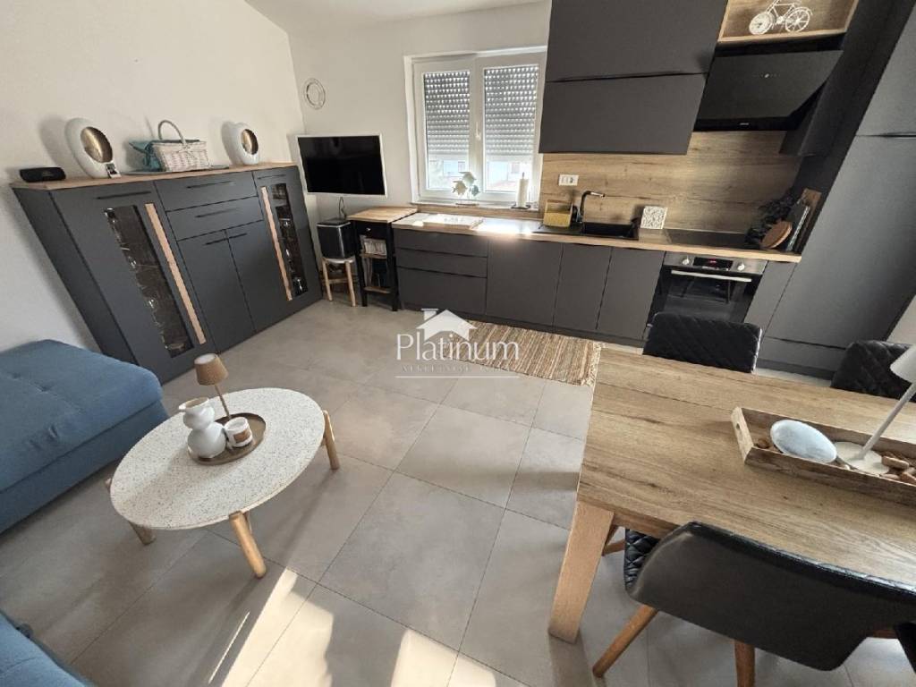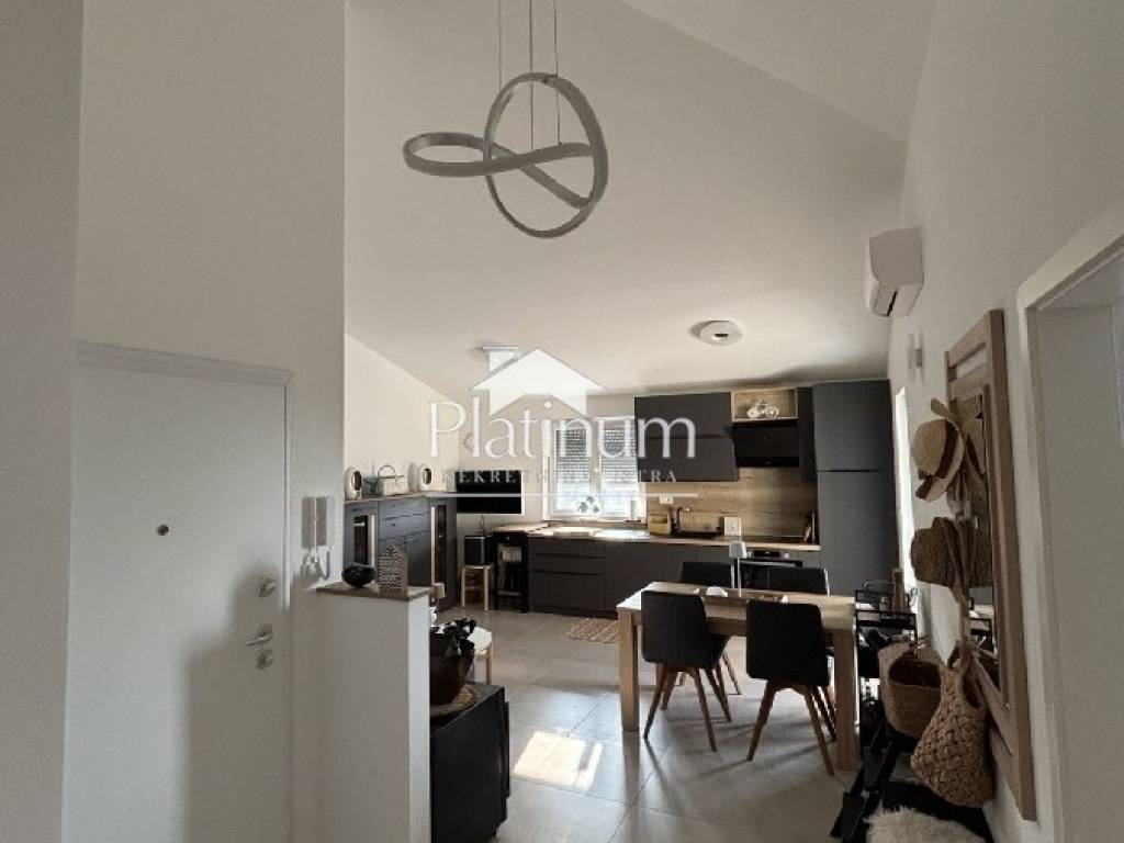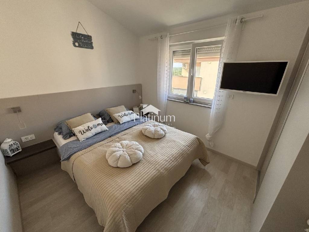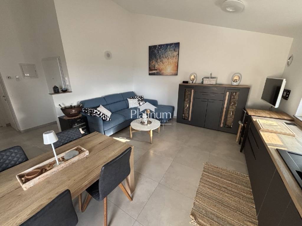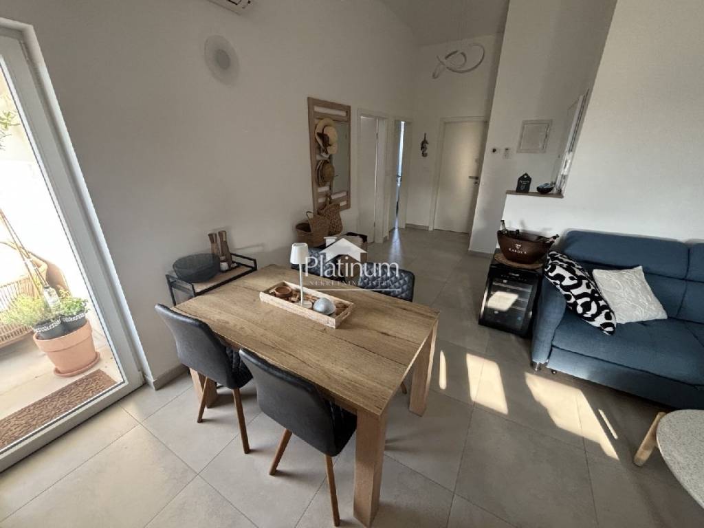 Apartman se nalazi na drugom katu novije zgrade a sastoji se od kuhinje s blagavaonom i dnevnim boravkom s izlazom na terasu,hodnikom,dvije spavaće sobe,kupaonice i parkingom.