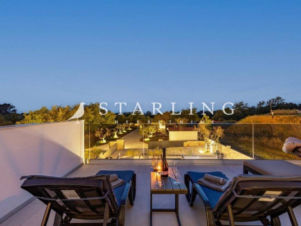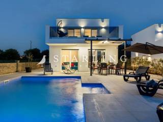 Vila je netto površine 106 m2, gornja terasa ima 32 m2, a donja natkrivena 20 m2 na koju se nastavlja sunčalište s bazenom od 30 m2.