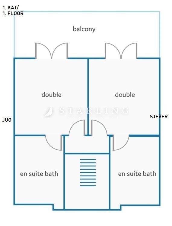 Druga etaža sastoji se od ulaznog prostora, dvije spavaće sobe, svaka sa zasebnom kupaonicom i izlazom na prostranu terasu.