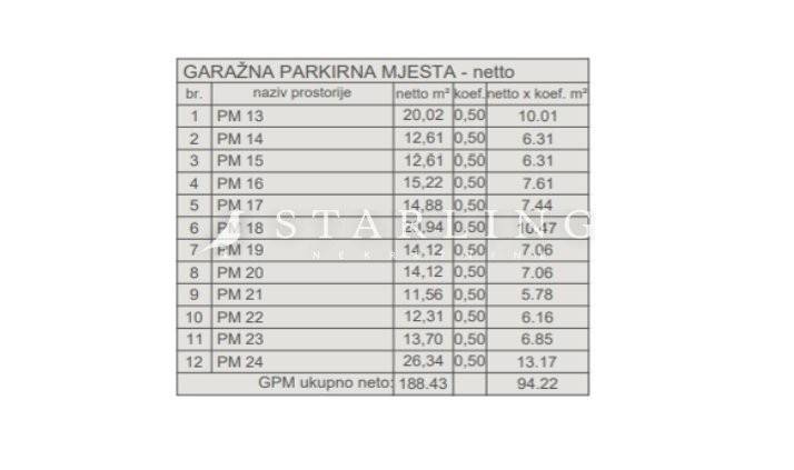Uz stan se dodatno plaća garažno ili vanjsko parkirno mjesto kao i spremište čiji je broj ograničen.