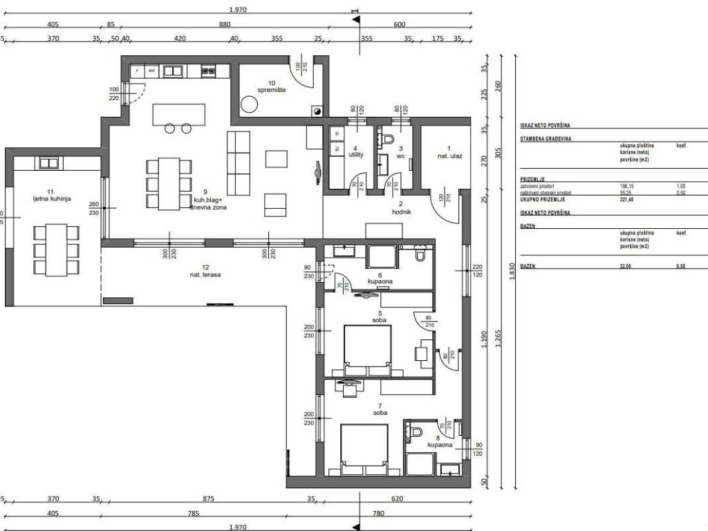 Lokacija je idealna za one koji traže mirno naselje koje pruža privatnost i opuštanje, a istovremeno je dovoljno blizu svim urbanim sadržajima. Blizina Labina omogućava jednostavan pristup trgovinama, školama, zdravstvenim ustanovama i ostalim važnim sadržajima. Svi komunalni priključci su već osigurani, čime se izbjegavaju dodatni troškovi i kašnjenja. Gotovi projekt za obiteljsku kuću s bazenom štedi vam vrijeme i novac u procesu planiranja i ishođenja dozvola.