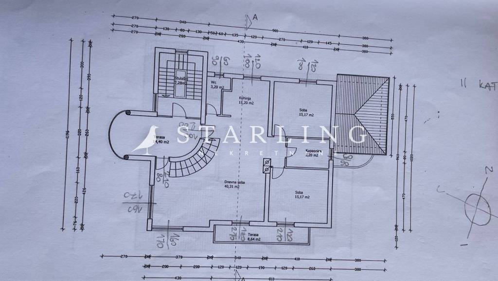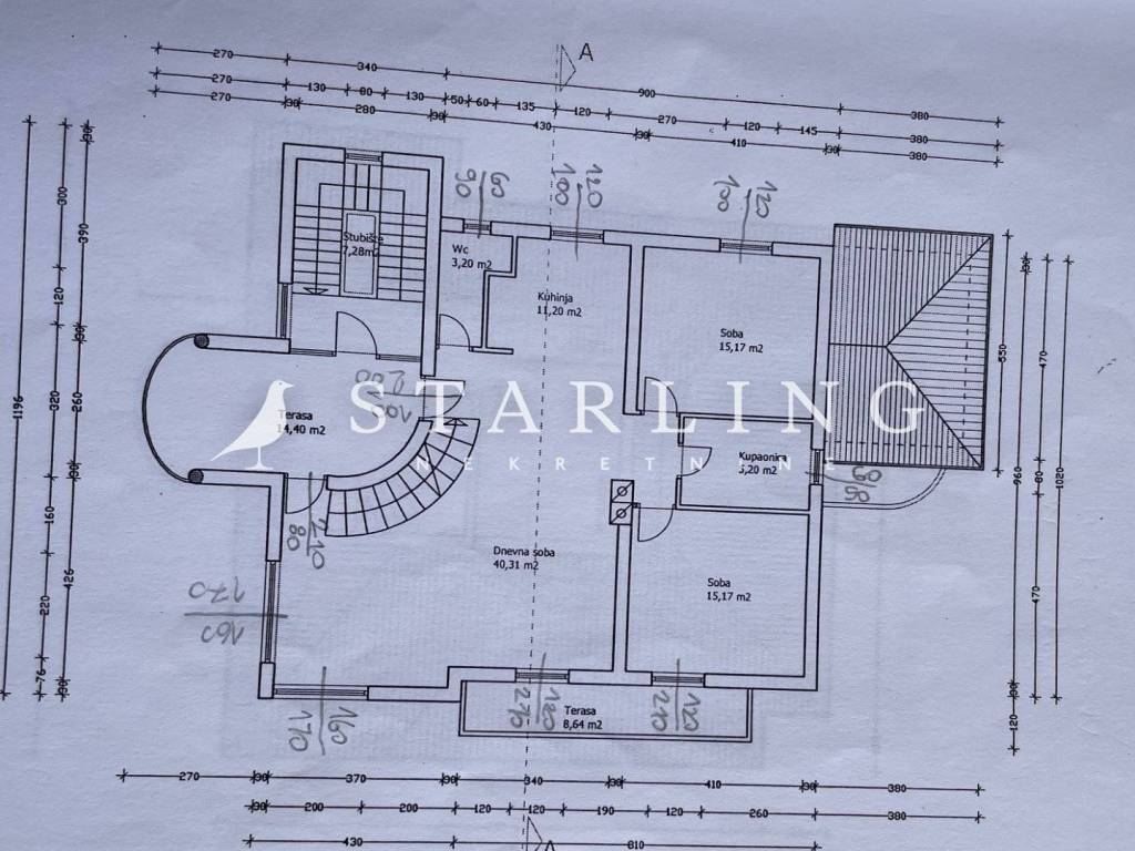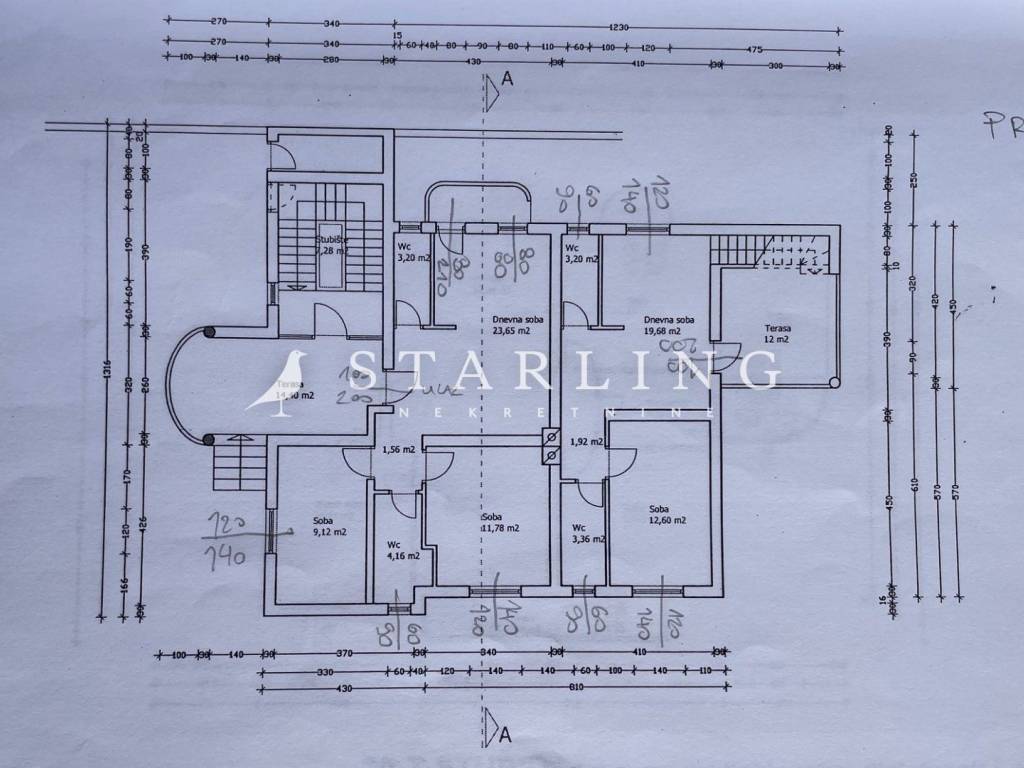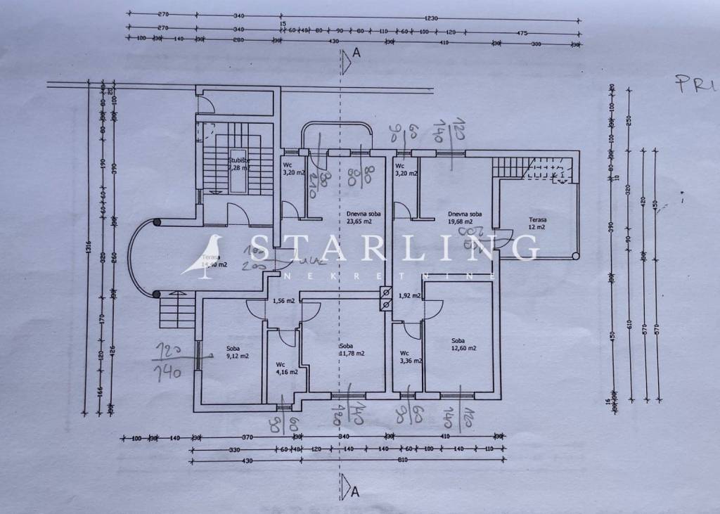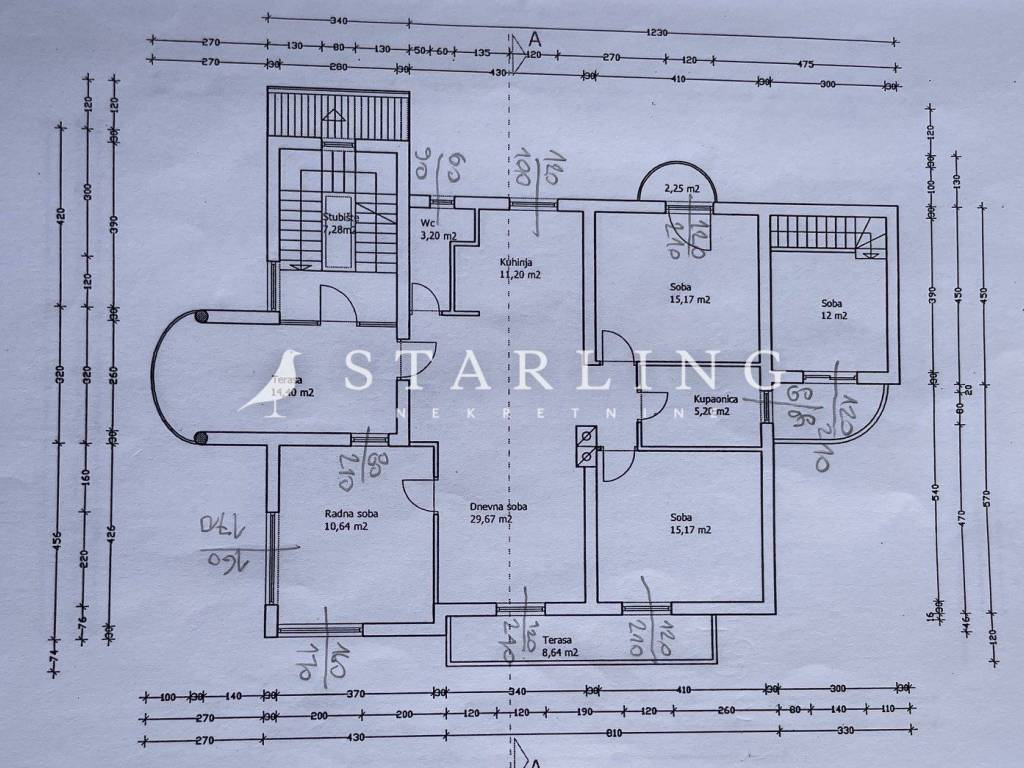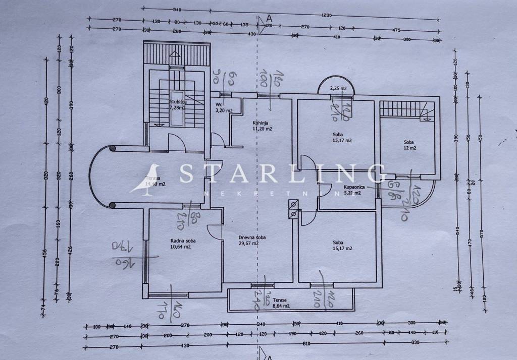 Veća kuća je ukupne površine 355 m2 sastoji se od četiri apartmana.