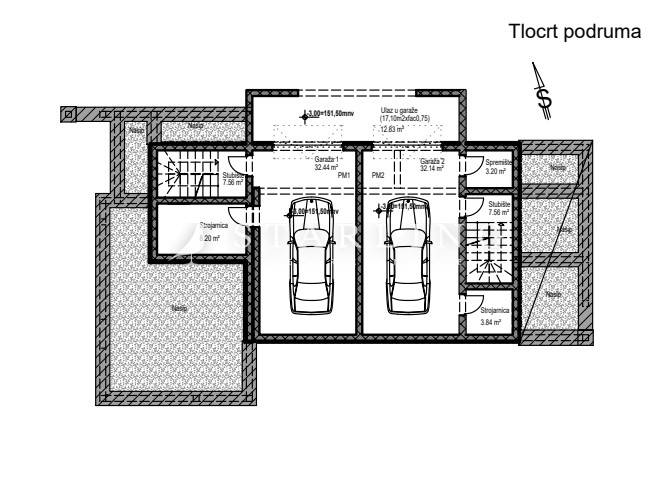 Unutar dvorišta moguće je parkirati četiri automobila za goste dok se u podzemnoj garaži nalazi još jedan parking za vlasnika vile.