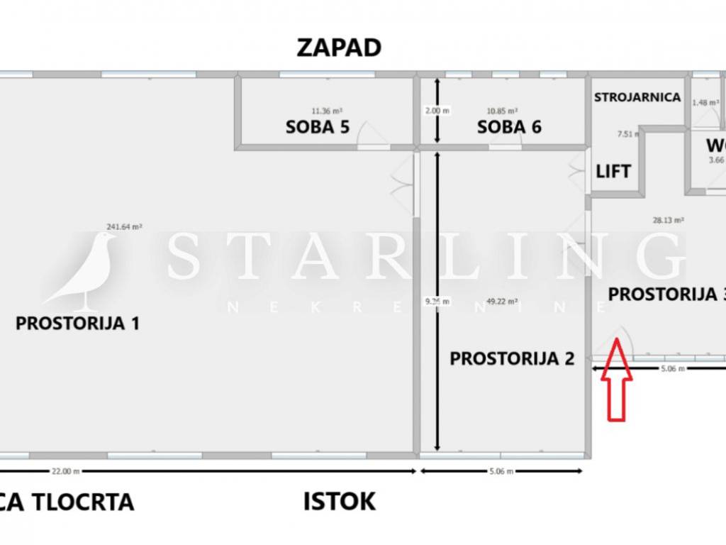 Daje se u zakup poslovni prostor površine 449 m2 na trećem katu poslovne zgrade s teretnim liftom.