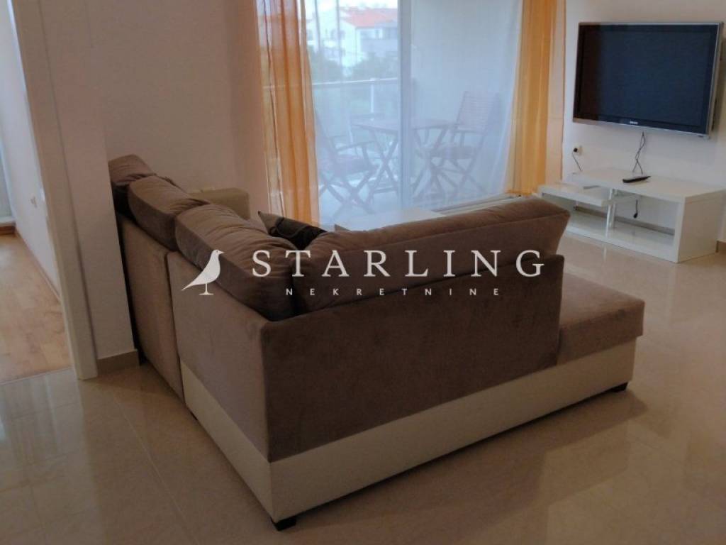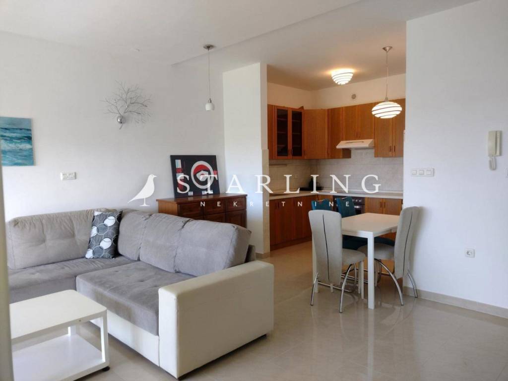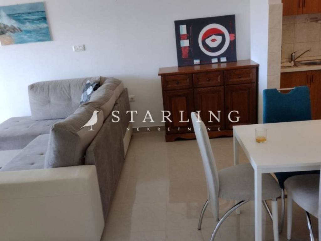 Stan se sastoji od prostranog dnevnog boravka, kuhinje i blagovaonice. Iz dnevnog boravka imamo direktan pristup prema natkrivenoj terasi sa moje se pruža pogled na more. Stan ima komfornu spavaću sobu i kupaonicu.
