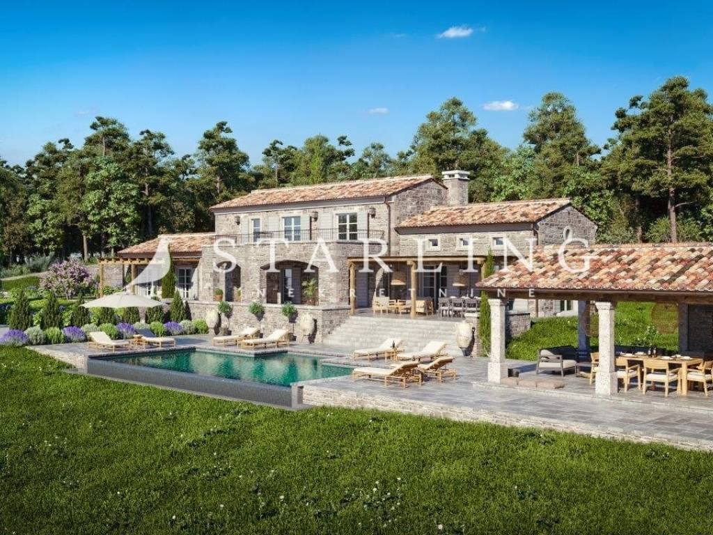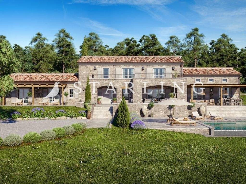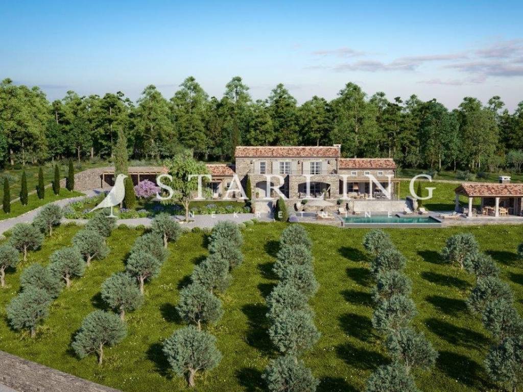 Prodaje se građevinsko zemljište s prekrasnim otvorenim panoramskim pogledom, ukupne površine 6846 m2, smješteno u mirnom naselju u okolici Motovuna. Napravljen je i projekt za izgradnju prekrasne prostrane istarske 'Stancije' s velikim infinity bazenom. Prema lokacijskoj dozvoli na ovom je zemljištu moguća i izgradnja čak 4 vile s bazenom.
