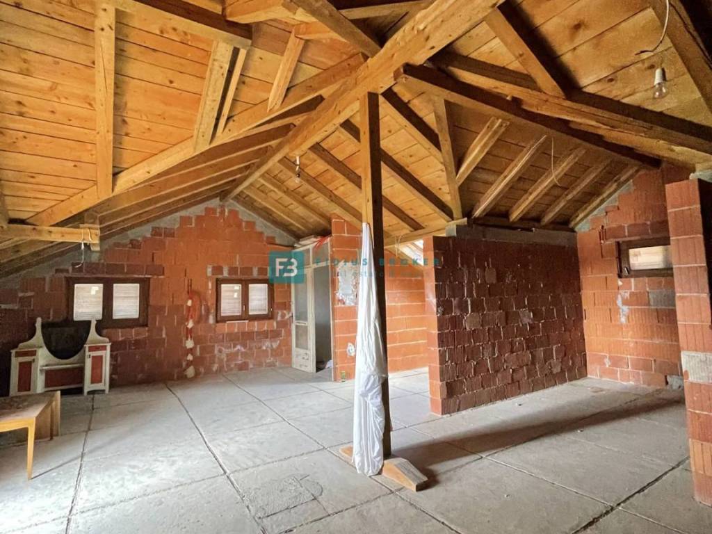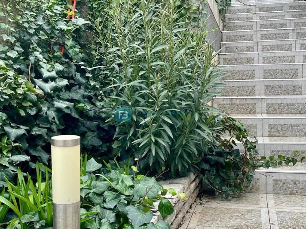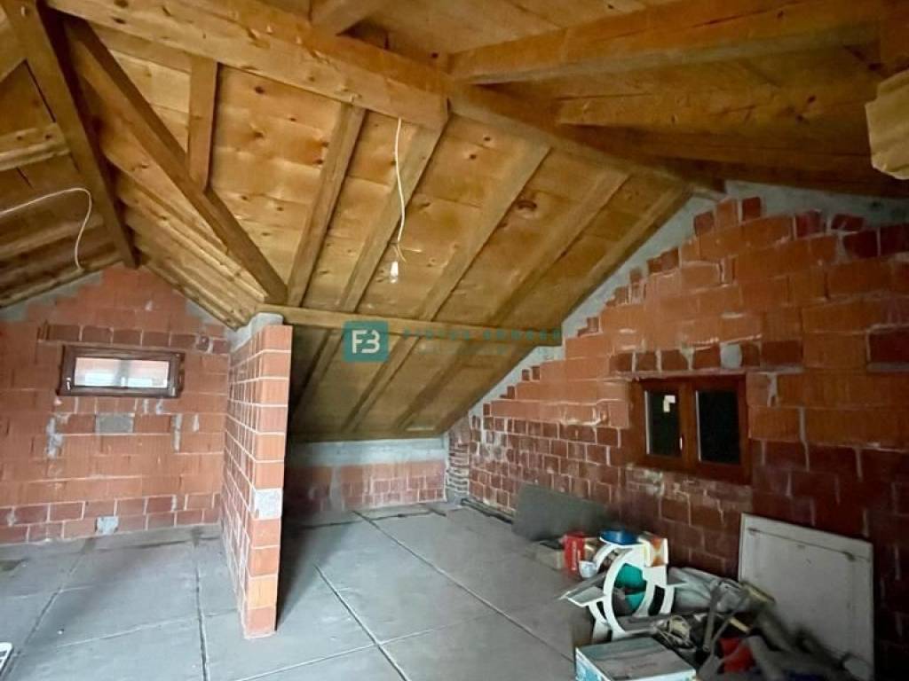 Samostojeća kuća ukupne površine 382,60 m2 izgrađena je na zemljištu površine 547 m2. Sastoji se od 4 etaže: suteren + visoko prizemlje + 1. kat + visoko potkrovlje. Suteren ukupne površine 45 m2 sastoji se od dvije odvojene prostorije, a ispred se nalazi terasa površine 17,60 m2 s koje se pruža pogled na more. Vanjskim stubištem dolazimo do visokog prizemlja brutto površine 110 m2 koje se sastoji od predsoblja, kupaonice, dvije velike spavaće sobe, dnevnog boravka s izlazom na terasu površine 12,80 m2, kuhinje s blagovaonicom s izlazom na terasu površine 18,50 m2. Zbog svog izvrsnog položaja sa terasa se pruža pogled na more i mjesto. Unutarnjim stubištem dolazimo na 1. kata ukupne površine 110 m2 koje se sastoji od 3 studio apartmana i 1 apartmana površine cca 35 m2. Svi apartmani su moderno uređeni i potpuno opremljeni (klima, TV) te spremni na nastavak uhodanog poslovanja. Visoko potkrovlje ukupne površine cca 100 m2 je nedovršeno i u Roh- Bau fazi, a s terase se pruža panoramski pogled na more i otočje.