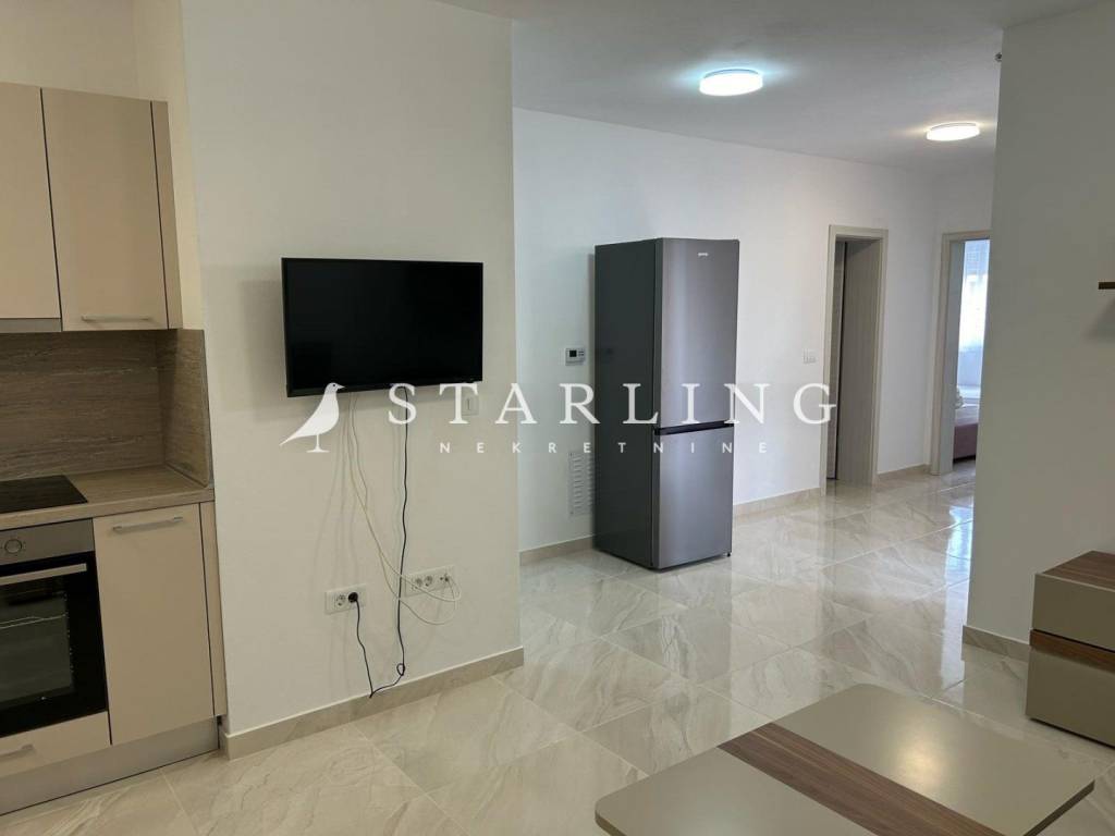 Stan je odličnog tlocrta i sastoji se od hodnika, kuhinje s blagovaonicom, komforne kupaonice ,dvije spavaće sobe i prostranog dnevnog boravka s izlazom na terasu. Ovaj stan krase moderan dizajn i funkcionalnost.