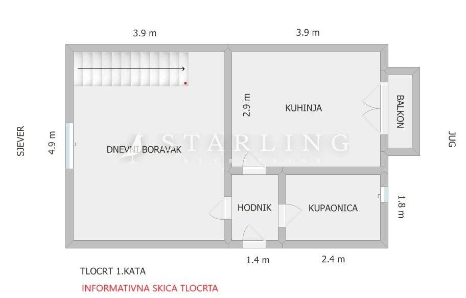Prodaje se trosoban stan ukupne tlocrtne površine 71 m2 na prvom katu zgrade bez lifta.