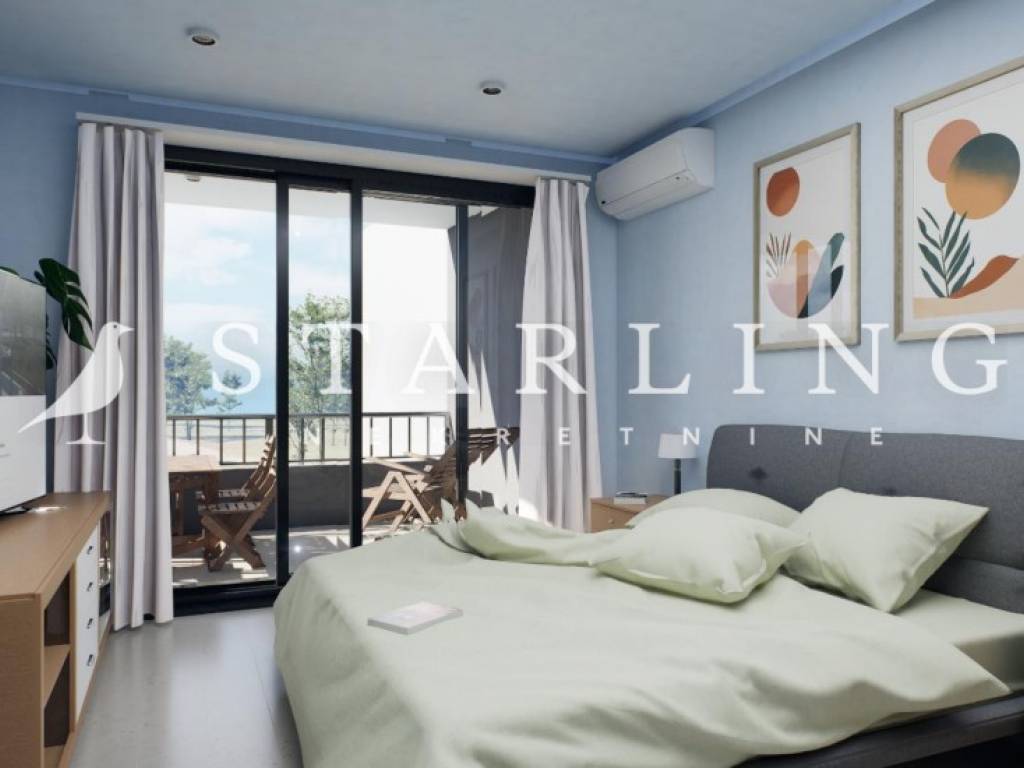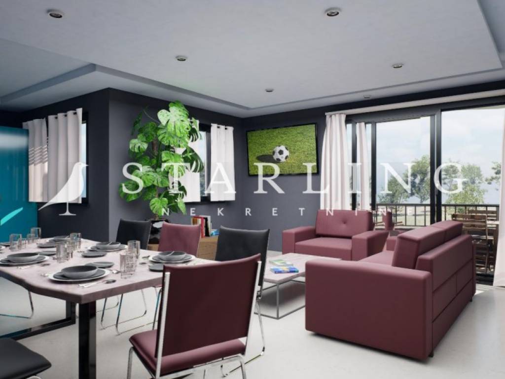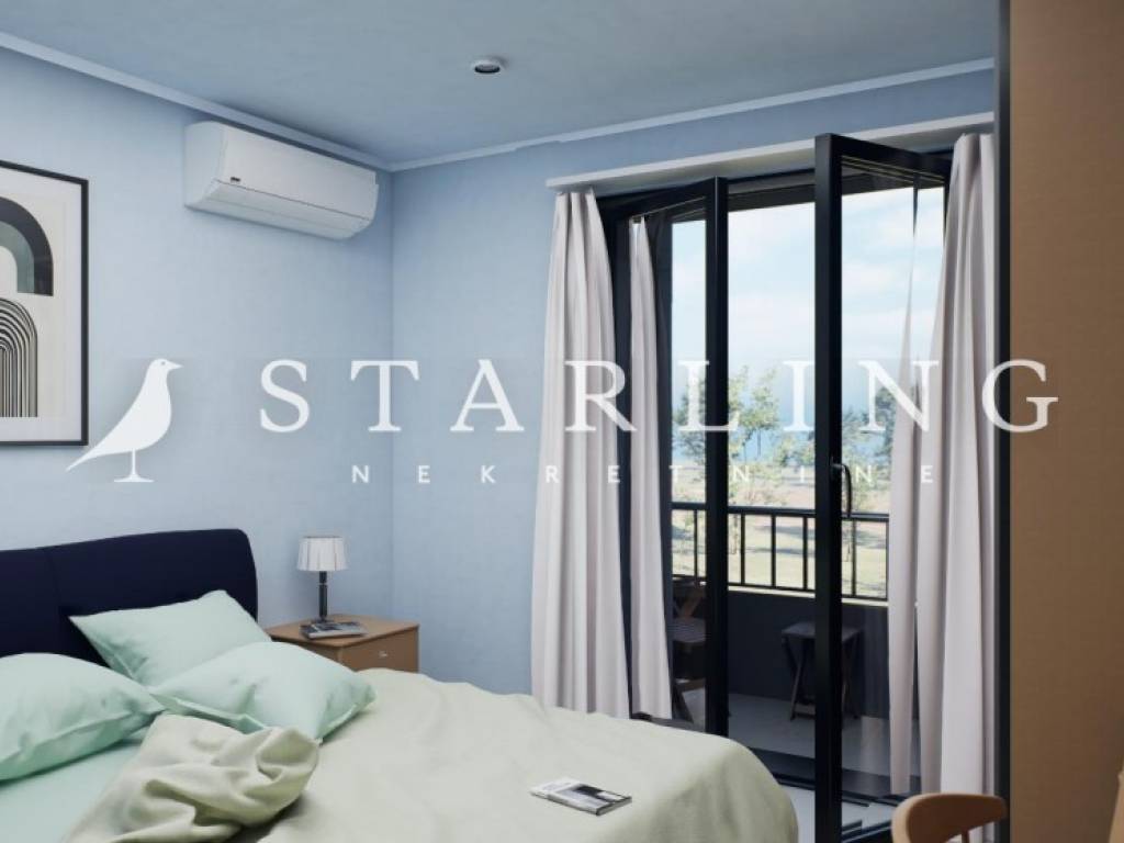 Luksuzni stan ukupne stambene površine 114 m2 na fenomenalnoj lokaciji, udaljen samo 600 m od mora, s prekrasnim pogledom na more. Stan se nalazi na drugom katu urbane zgrade koja ukupno ima četiri stana.