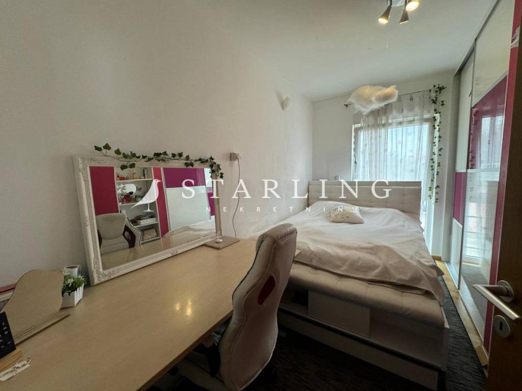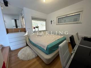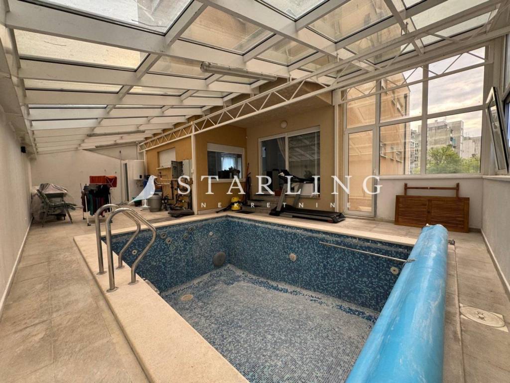 Stan se sastoji od dnevnog boravka, open-space kuhinje s blagovaonicom, tri spavaće sobe, kupaonice s WC-om, zasebnim WC-om, hodnika, loggie, terase i zimskog vrta s bazenom.