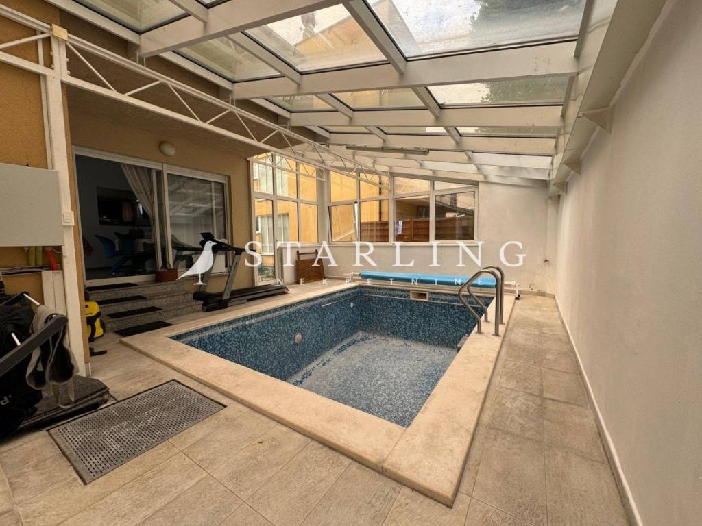 Grijani bazen s protustrujnim plivanjem, pokrivačem te sustavom automatskog održavanja kao i tušem omogućava opuštanje i rekreaciju tijekom cijele godine, bez obzira na vremenske uvjete.
