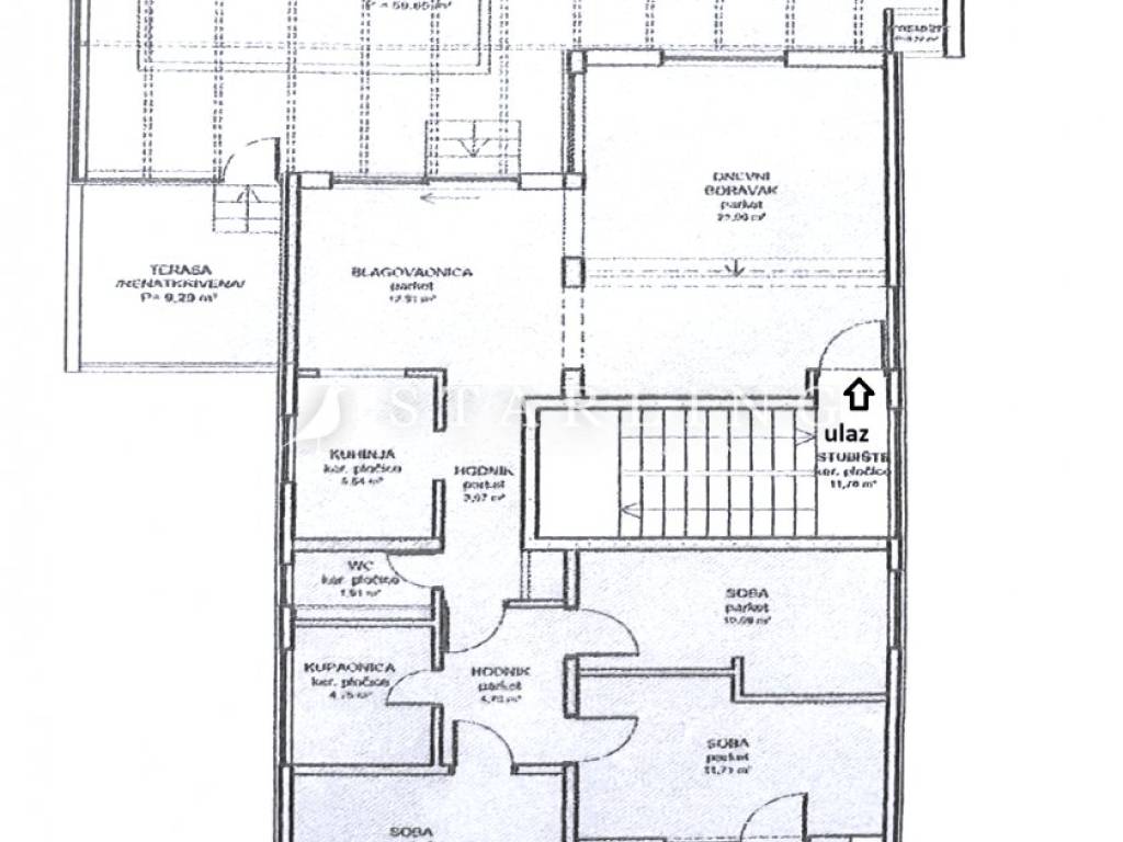 Sami stan iznosi 152 m2 NKP dok terasa, v.parkirno, garažno parkirno iznose 11.8 m2 NKP što u totalu iznosi 164 m2 NKP.