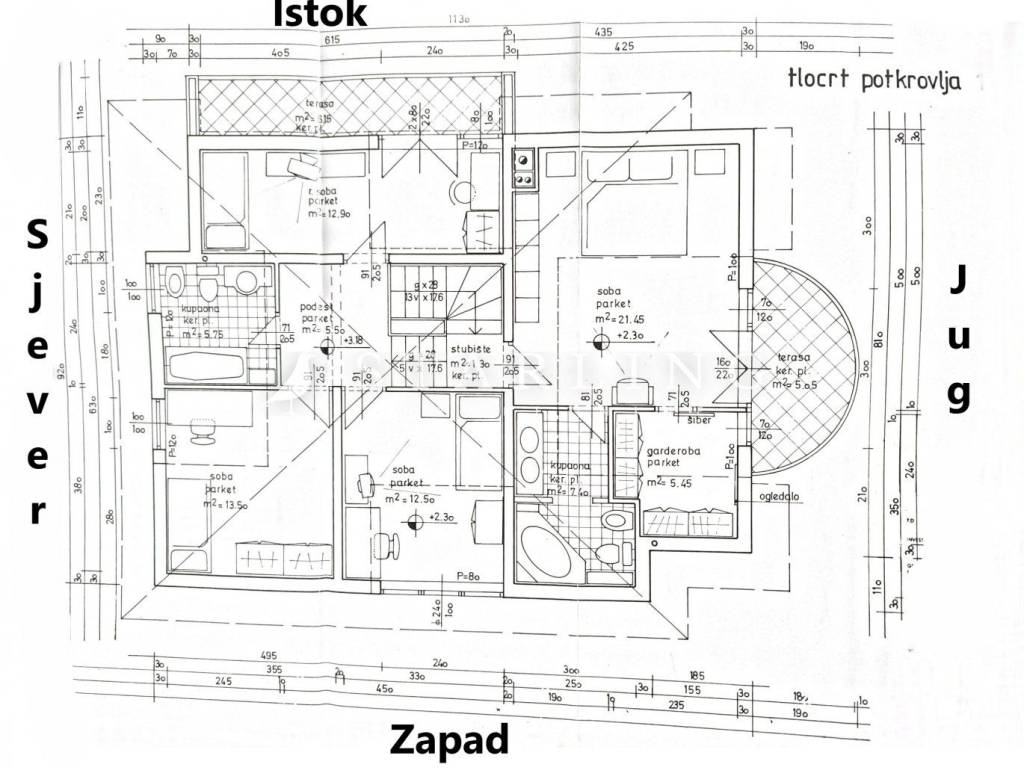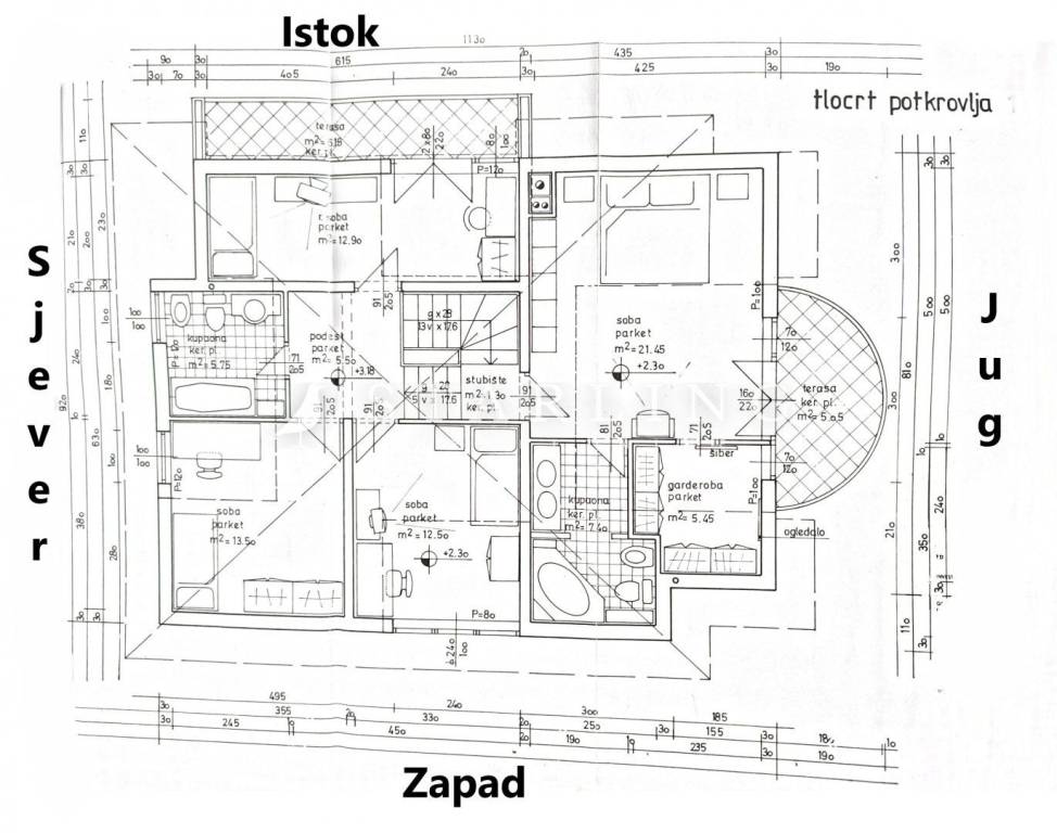 Potkrovlje se sastoji od četiri spavaće sobe, walk-in ormara, dvije kupaonice s toaletom, terase i hodnika.